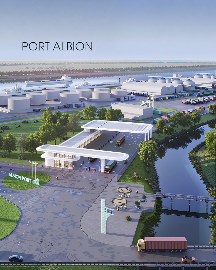 We design complex technological facilities, and one such project is the Albion river-sea port. This is an innovative port hub in the Izmail district. Our goal is to create a new level of logistics where efficiency is combined with comfort for people.