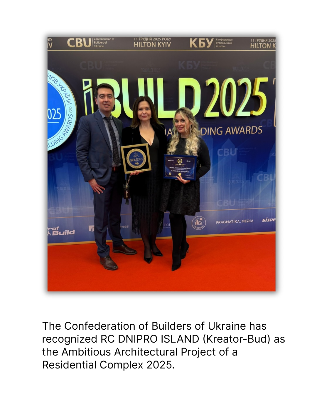 The Confederation of Builders of Ukraine has recognized the Dnipro Island residential complex as Ukraine’s most ambitious architectural project of 2025 as part of the iBuild National Award.