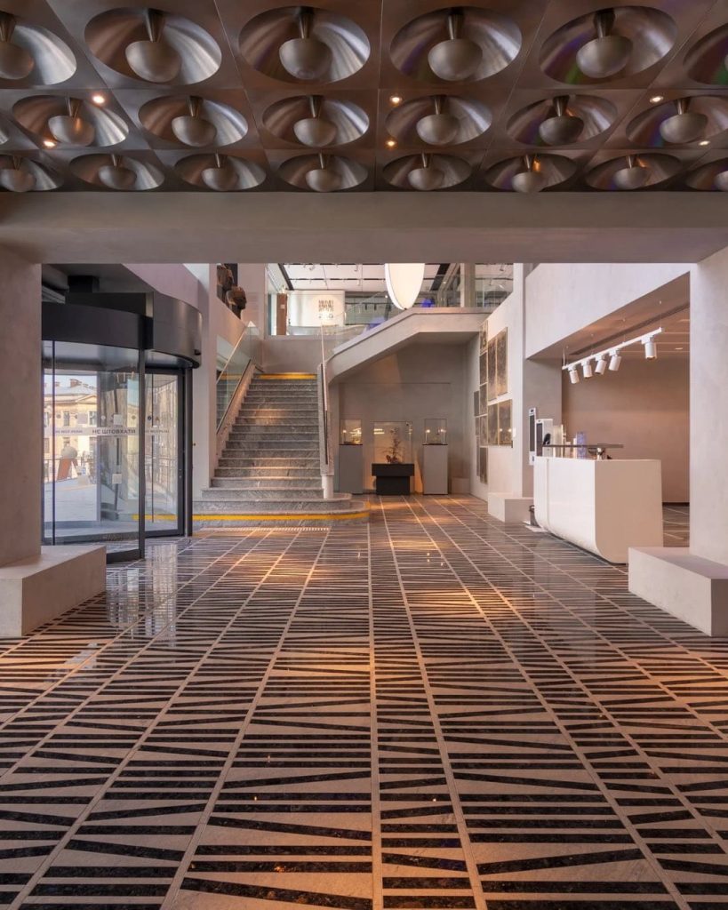 The renovation of the institute building at ZAG Gallery serves as an example of a creative approach to preserving the existing structure of the environment. The building’s form combines a glass shell with decorative elements shaped like “little books,” creating a harmonious composition. An innovative solution was the use of aluminum as the primary material for the facade, which allowed us to achieve the desired visual effect while maintaining the structure’s lightness.