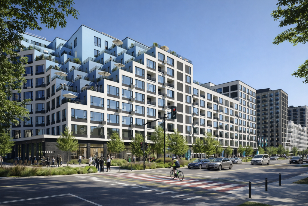 The complex’s architecture is impressive. The cascade of terraces not only transforms the facade’s appearance but also adds variety and functionality to the apartment layouts inside. Construction is currently underway, and we’re already looking forward to the completion of the first phase!