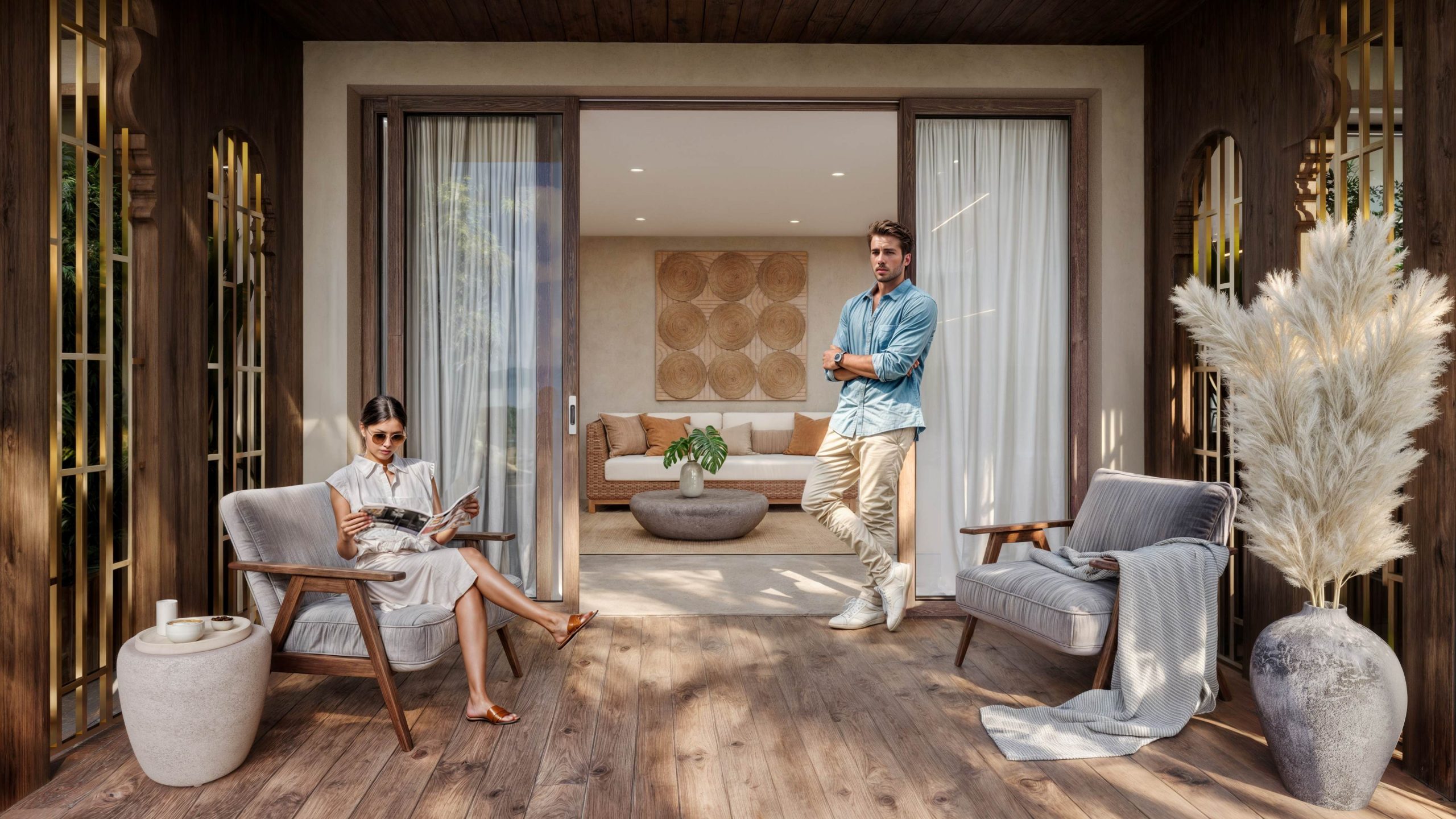 The planning solutions and landscape design blur the boundaries between the natural environment and architectural intervention, emphasizing the concept of unity. The facades are crafted from natural materials—stone and wood—framed by cascading gardens that gently descend, immersing guests in a tropical forest atmosphere.