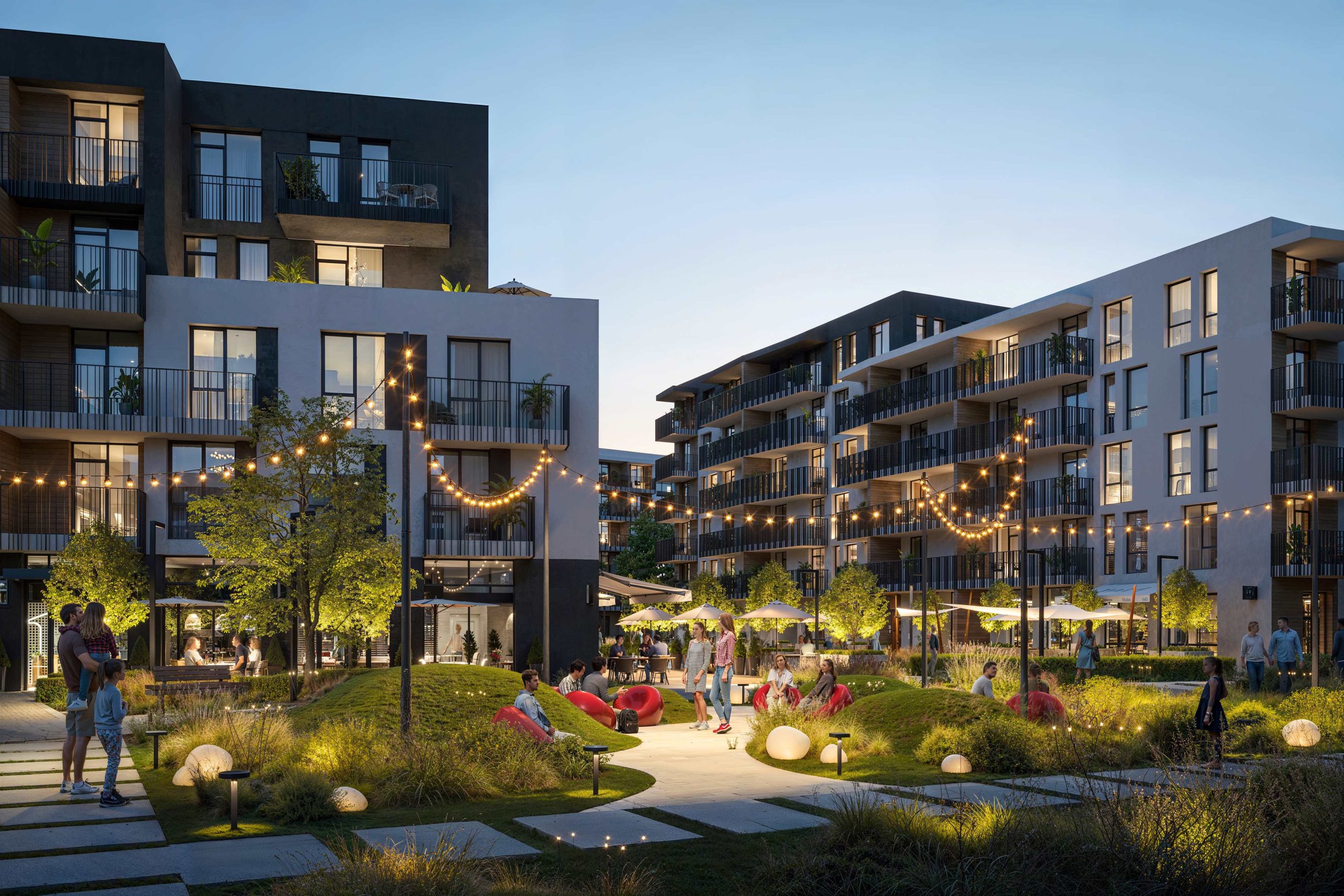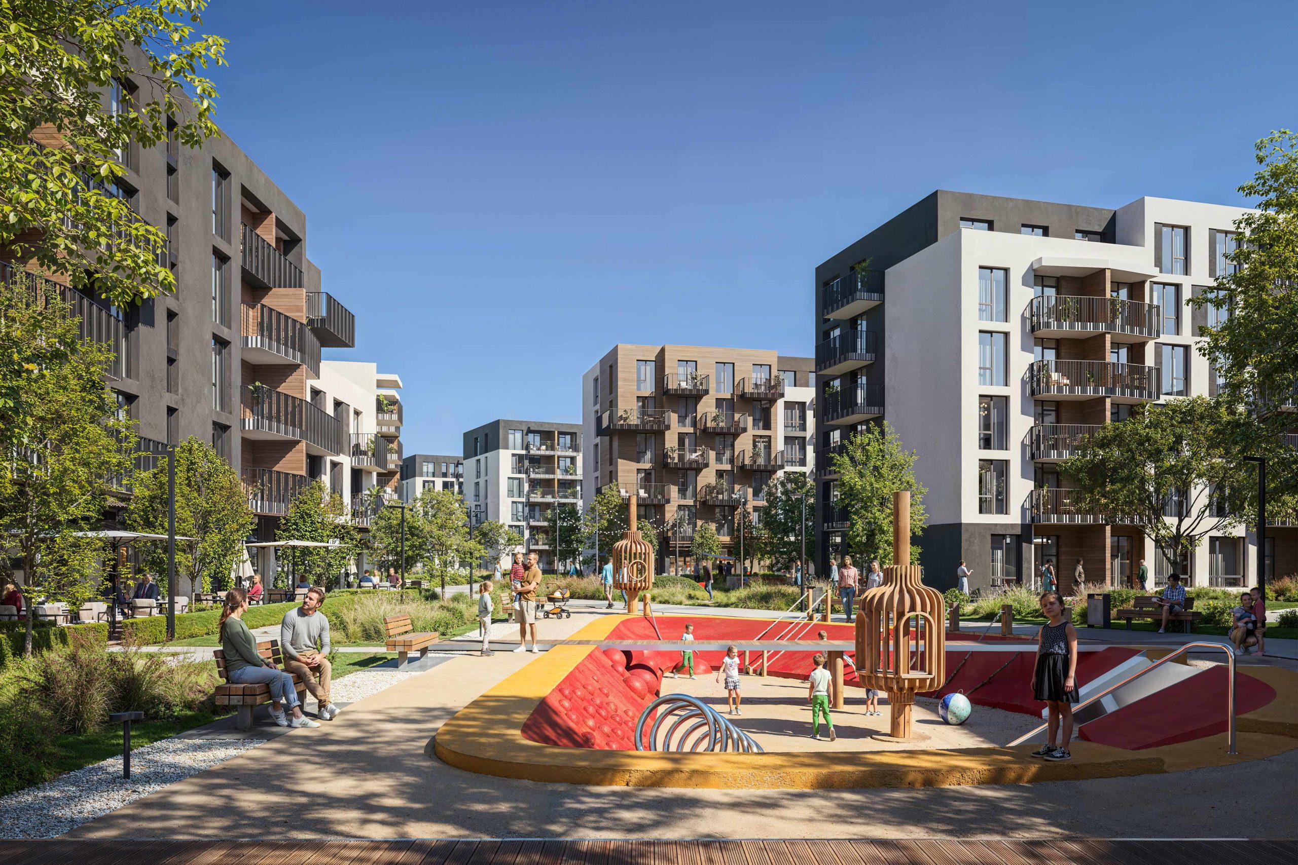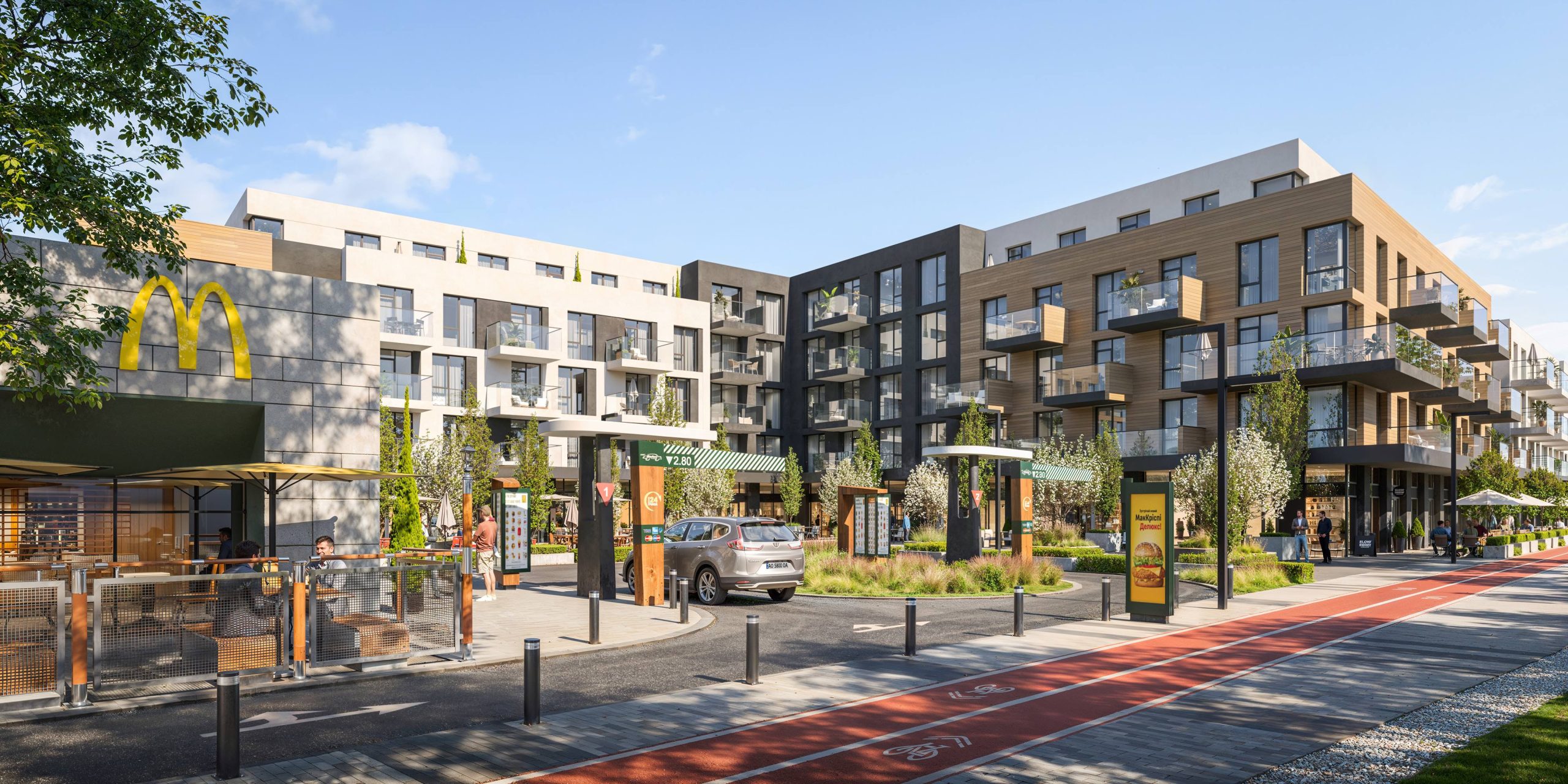 The project’s architectural code is based on human-scale principles: instead of aggressive high-rise development, we created a comfortable space of low-rise buildings. This approach allowed us to preserve a sense of privacy, ensure courtyard insolation, and open up panoramic views of Bozdoskyi Park.