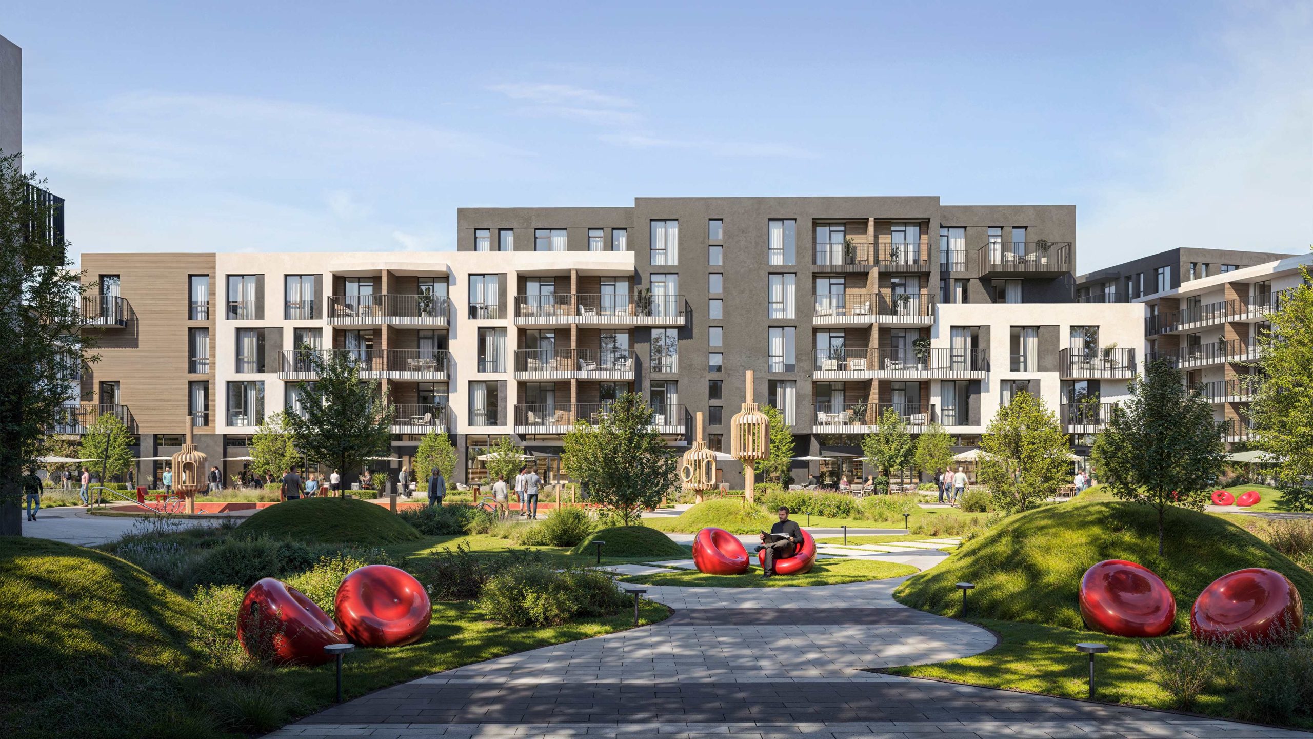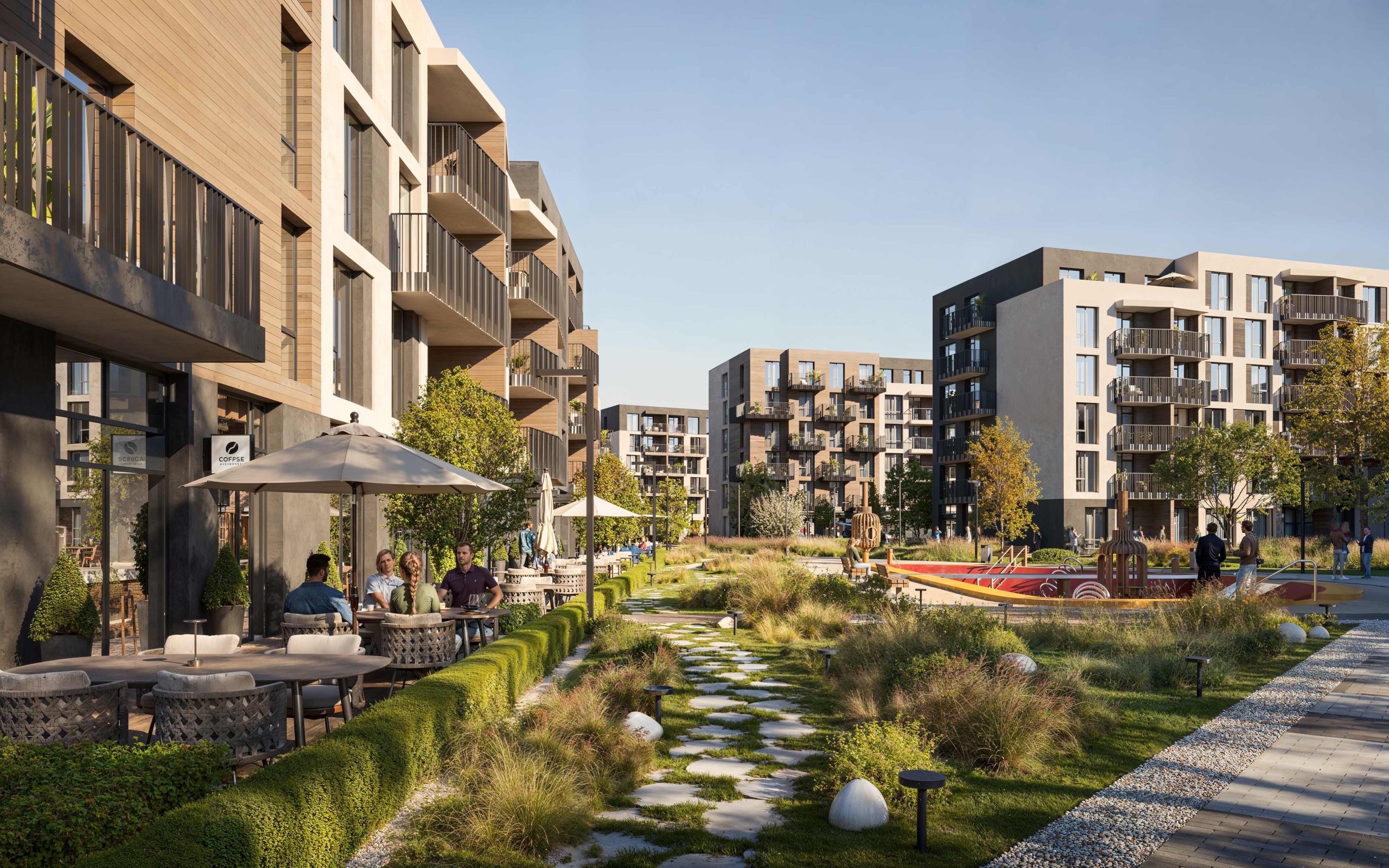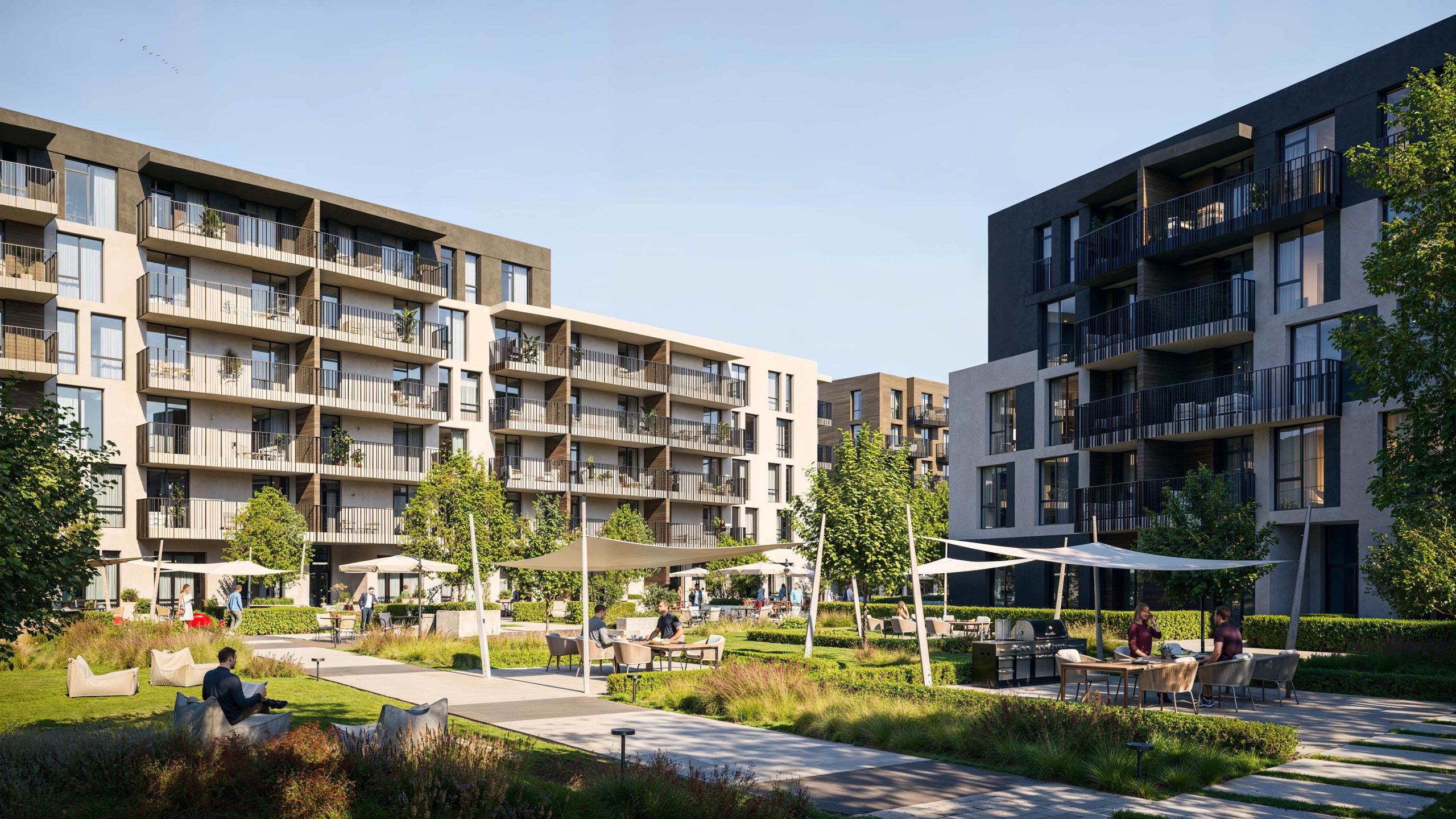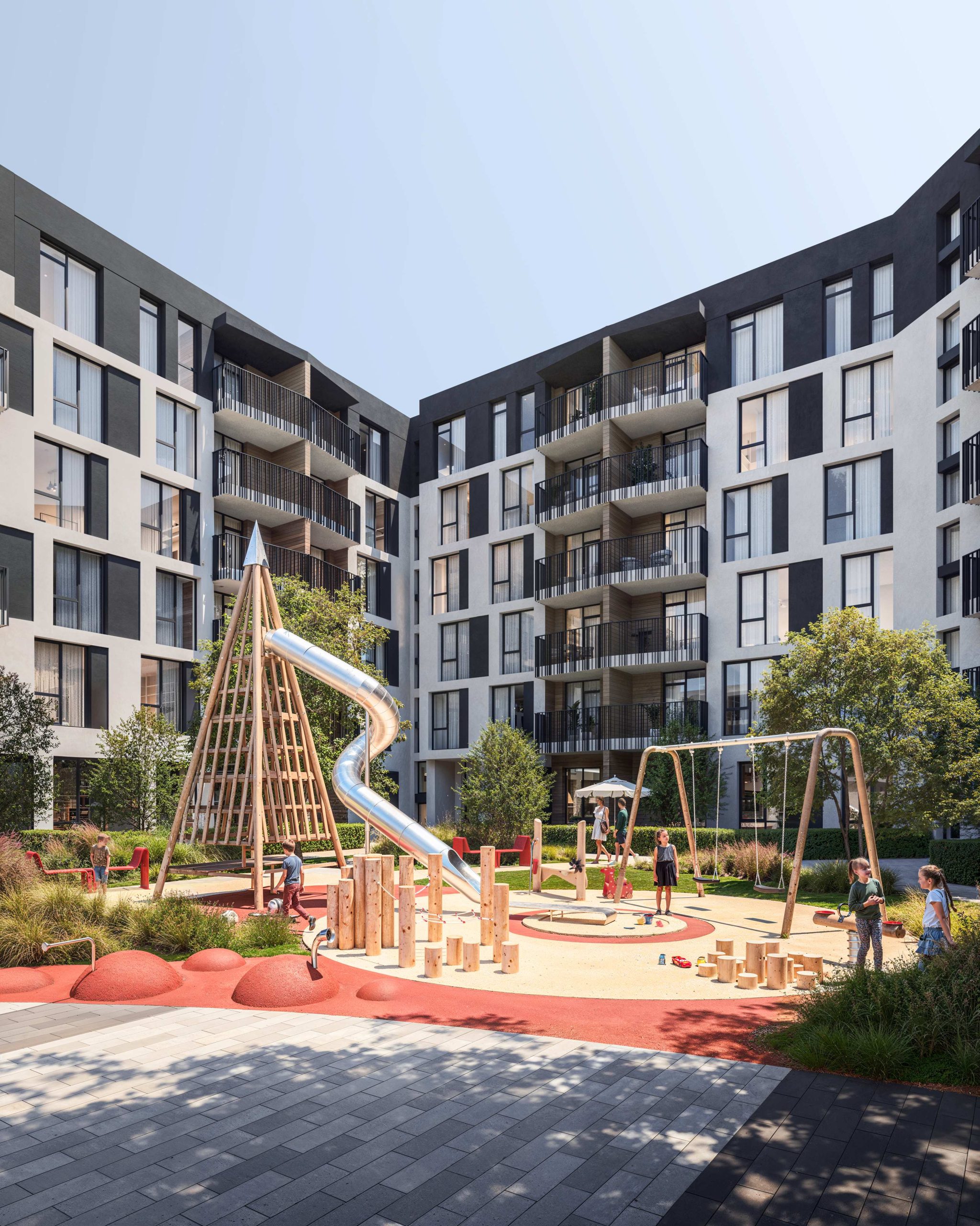 The project’s architectural code is based on human-scale principles: instead of aggressive high-rise development, we created a comfortable space of low-rise buildings. This approach allowed us to preserve a sense of privacy, ensure courtyard insolation, and open up panoramic views of Bozdoskyi Park.