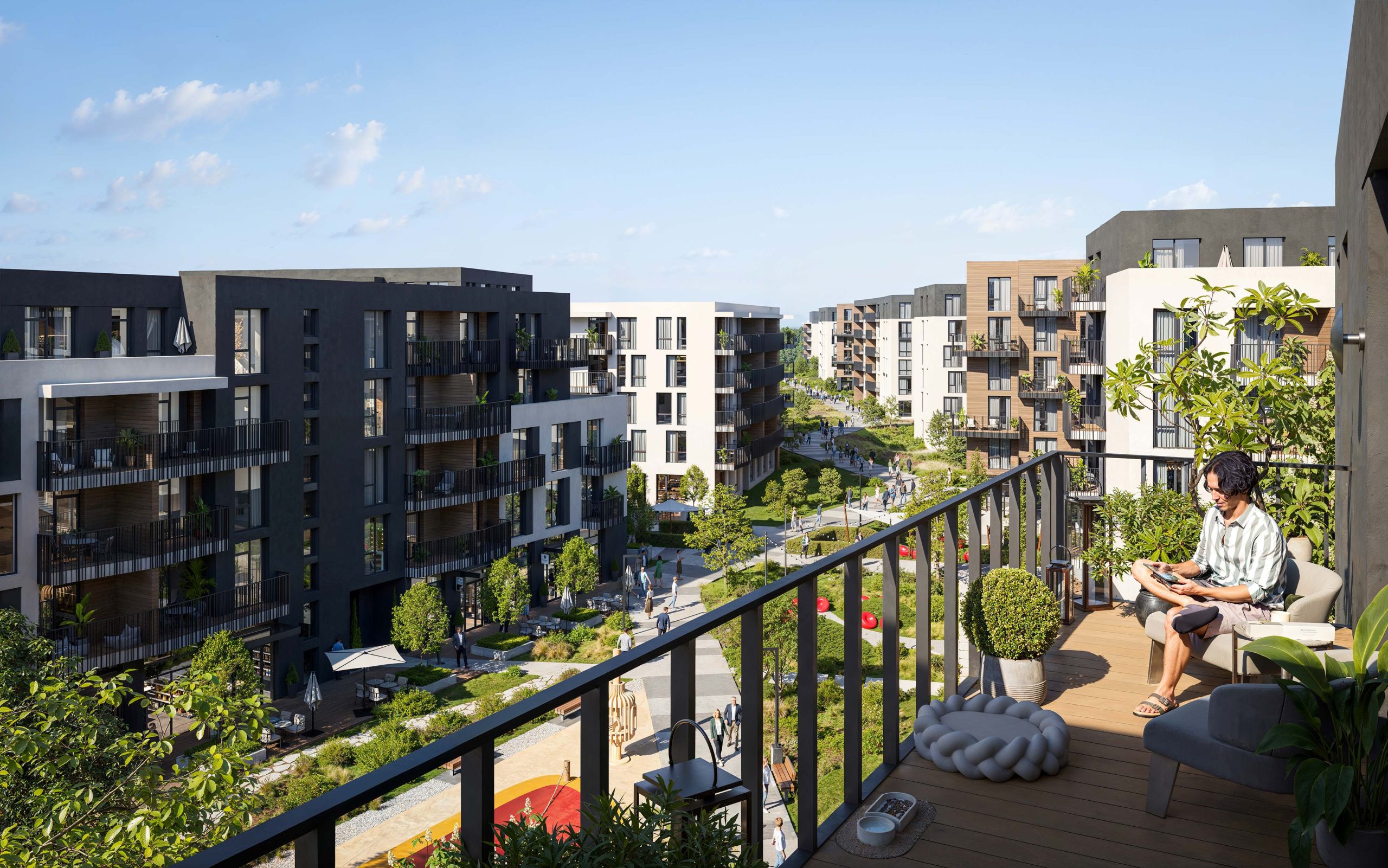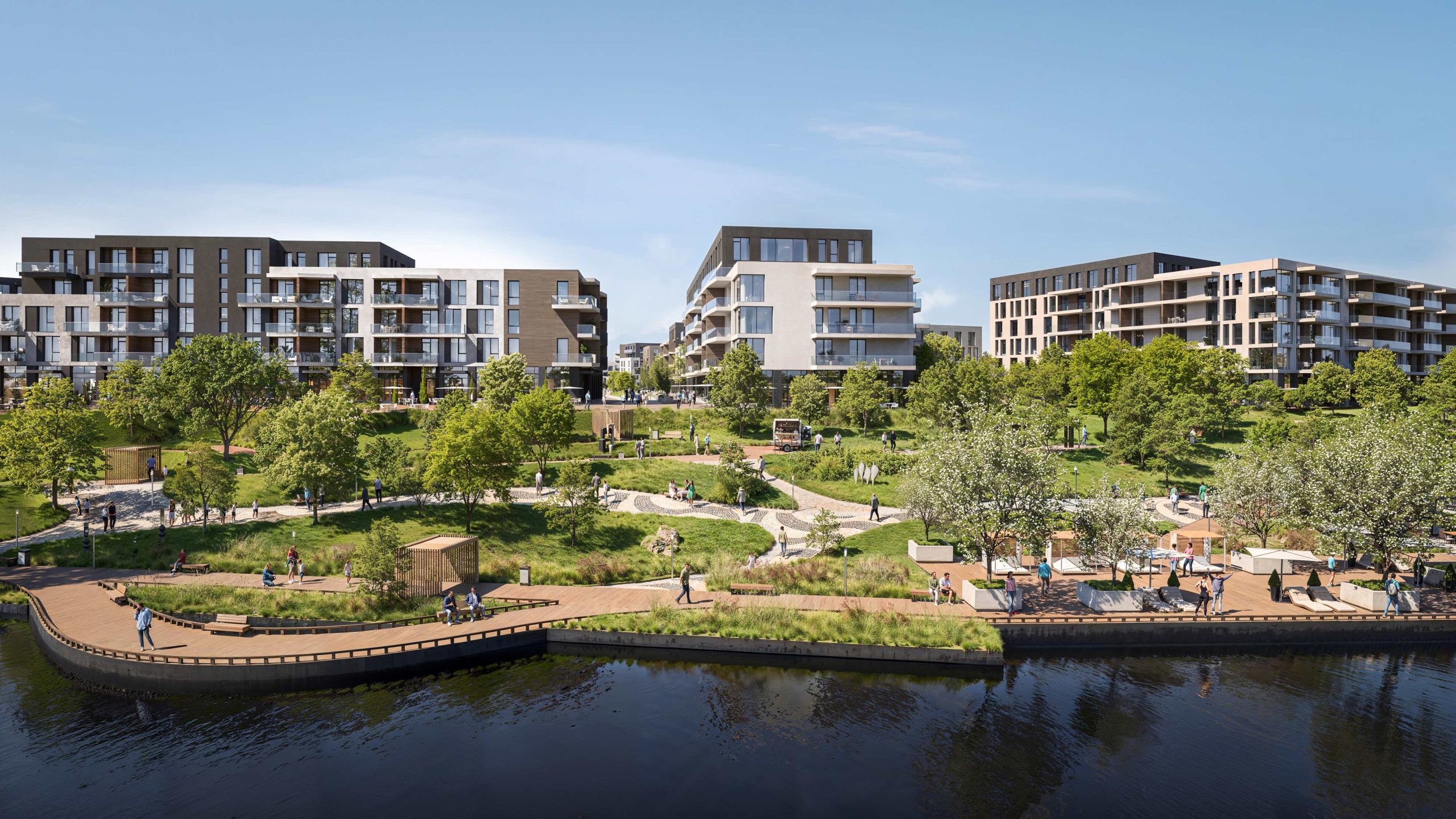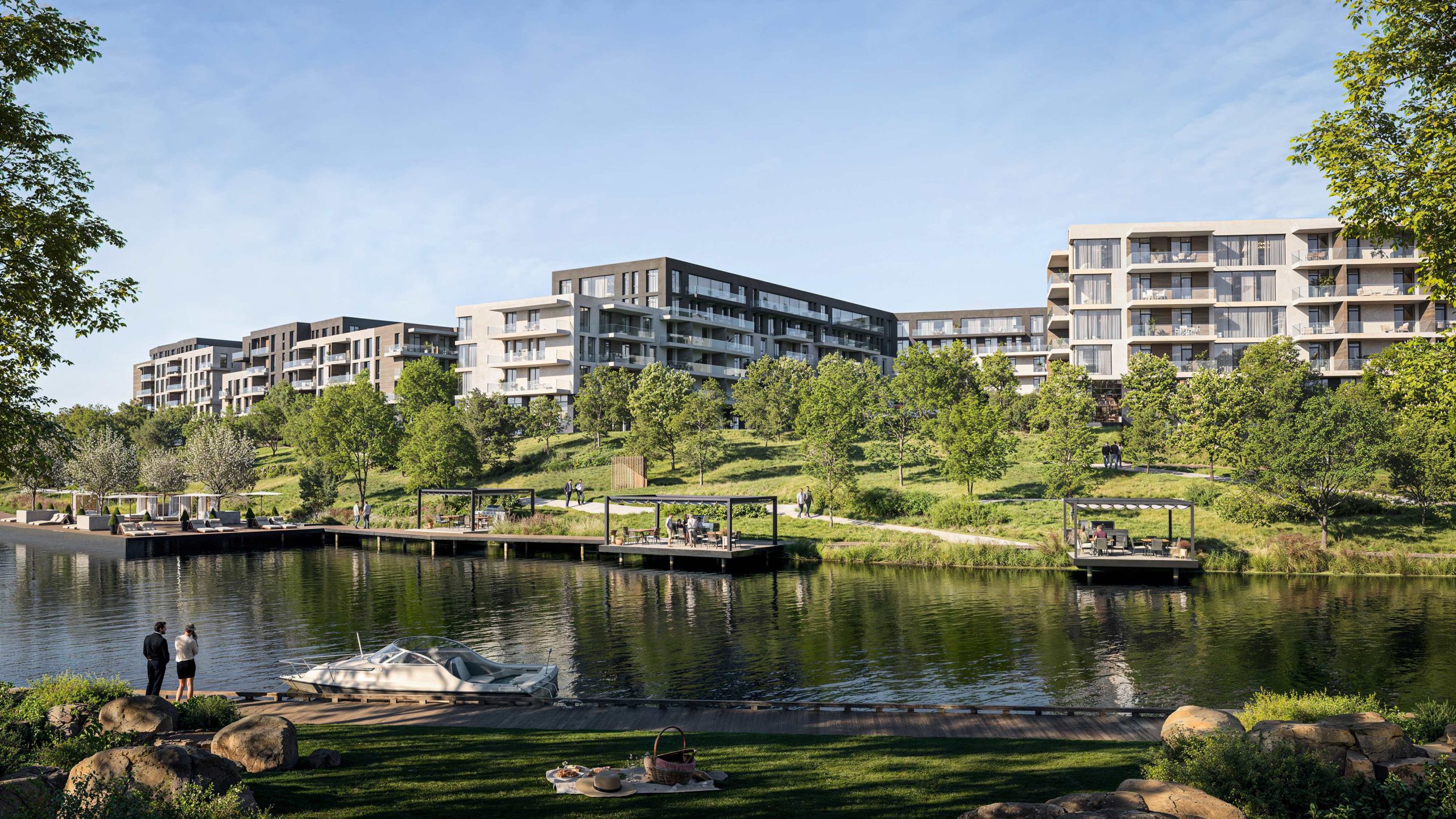 The heart of the quarter is its private 500-meter embankment and a developed ecosystem of services. The territory includes everything necessary: from a private educational complex (school and kindergarten) to a SPA center and a shopping mall. Central Park represents a synergy of modern European architecture and nature, where 60% of the territory is dedicated to green zones and promenades.