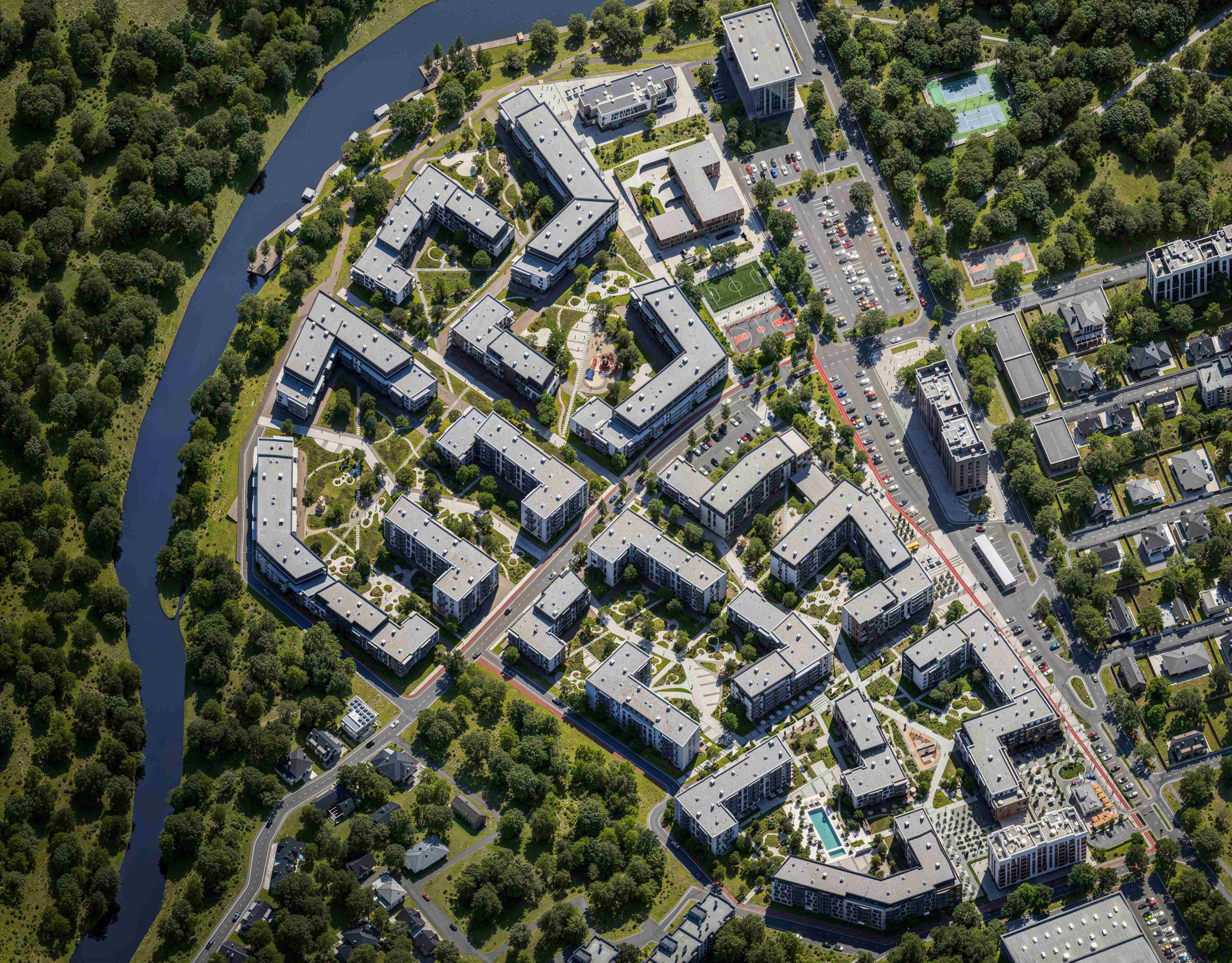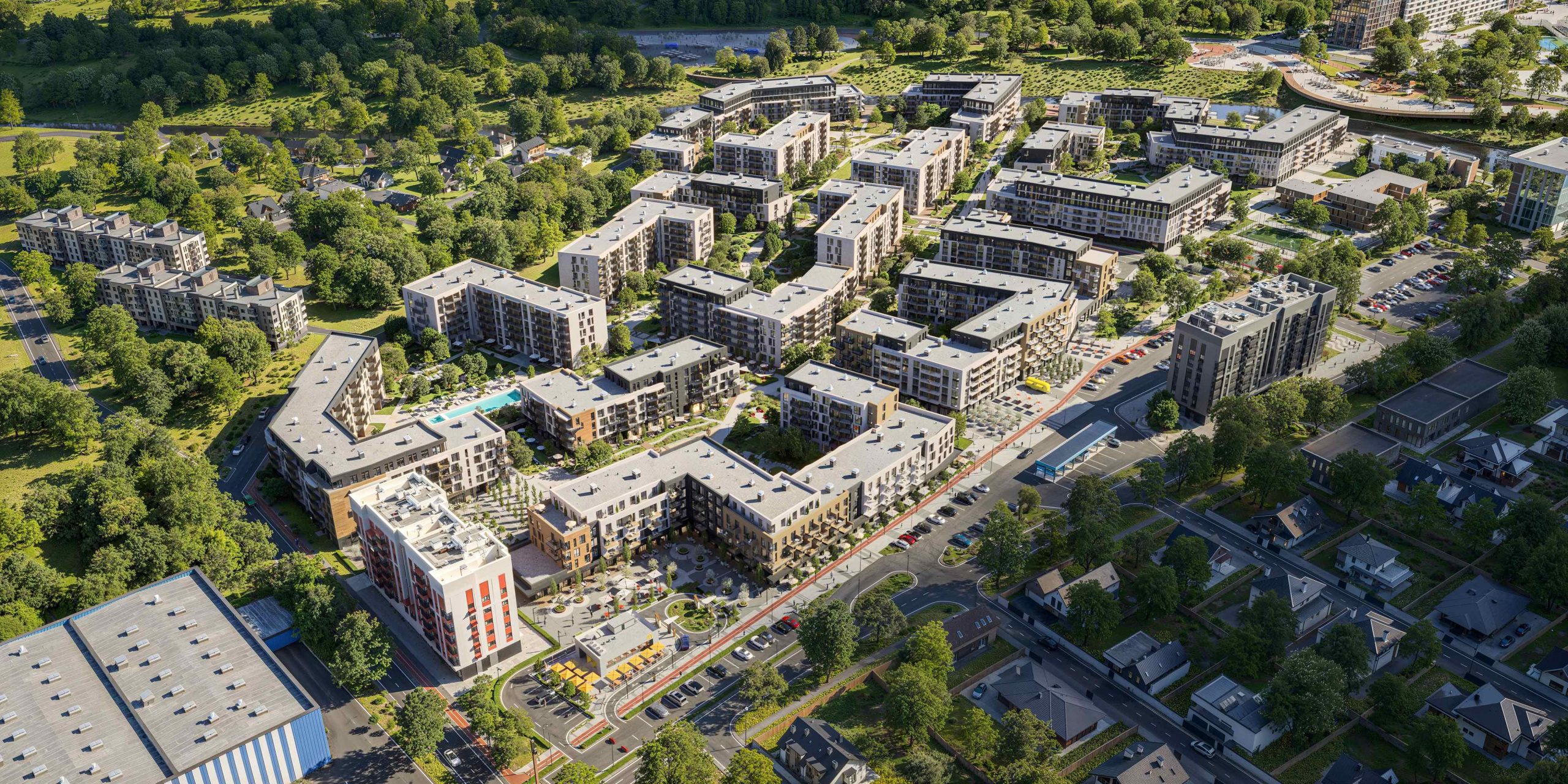 Central Park Residential Complex is a project of unprecedented scale that redefines the quality of living in the Zakarpattia region. The “city within a city” concept transforms a 13-hectare area into a self-sufficient eco-district, seamlessly integrated into the picturesque landscape of the Uzh River.