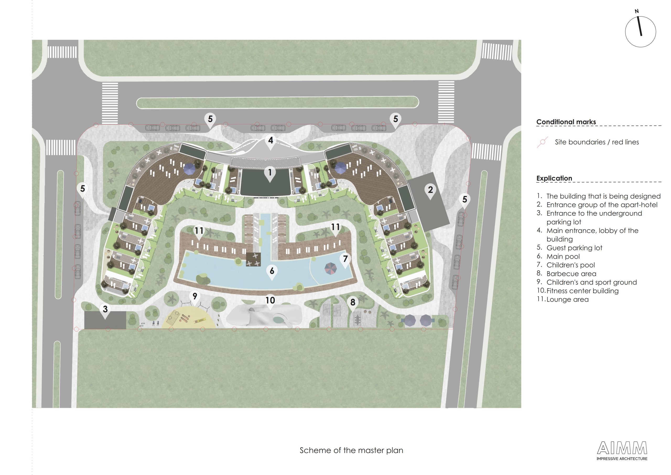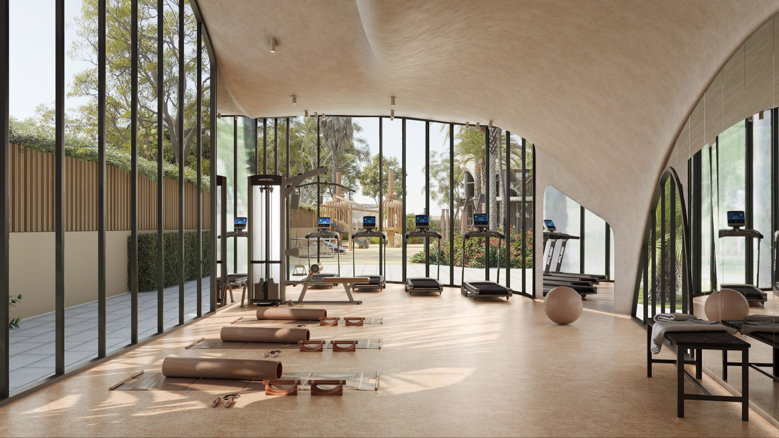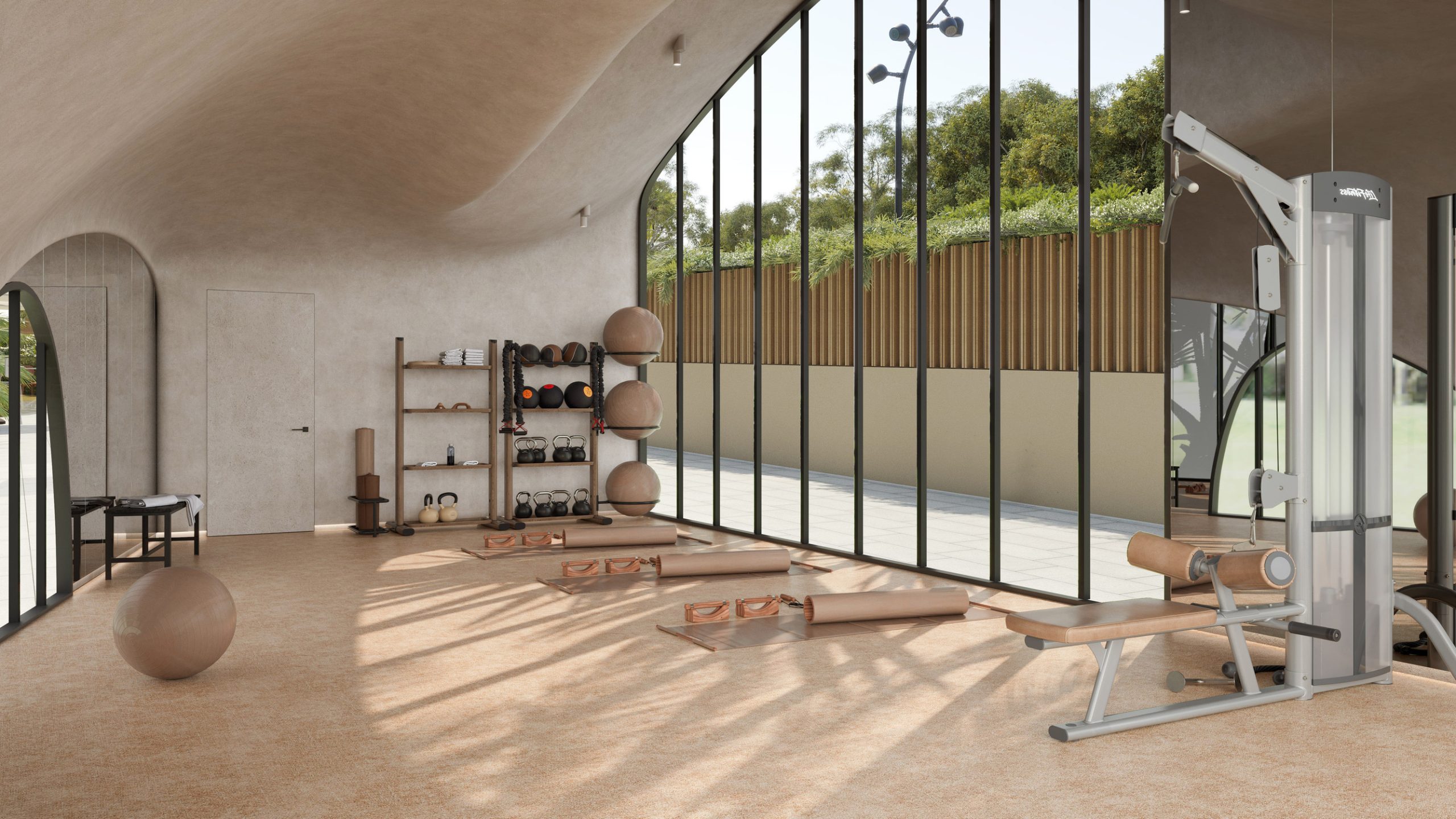 Bionic Accent Acting as a counterpoint to the restrained geometry of the residential block is the fitness center building. It is designed with fluid bionic forms reminiscent of sea waves or natural landscapes. This is not merely a functional structure but a sculptural element that softens the complex’s overall composition.