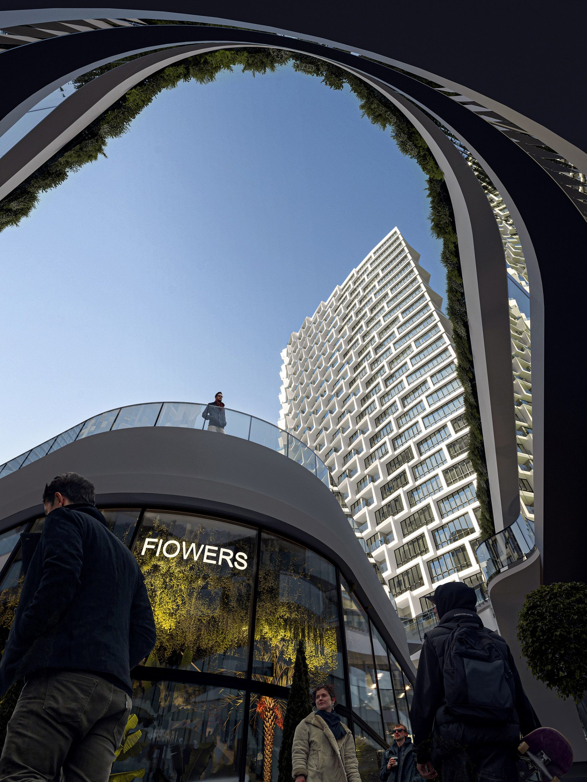 The 105 m tall Dnipro Towers is located on the river shore with an incredible panorama of the Dnipro cliffs. The 30 storey mixed-use development continues Kyiv`s pioneering vertical urbanism by creating a diverse neighborhood of places to work, live and play.