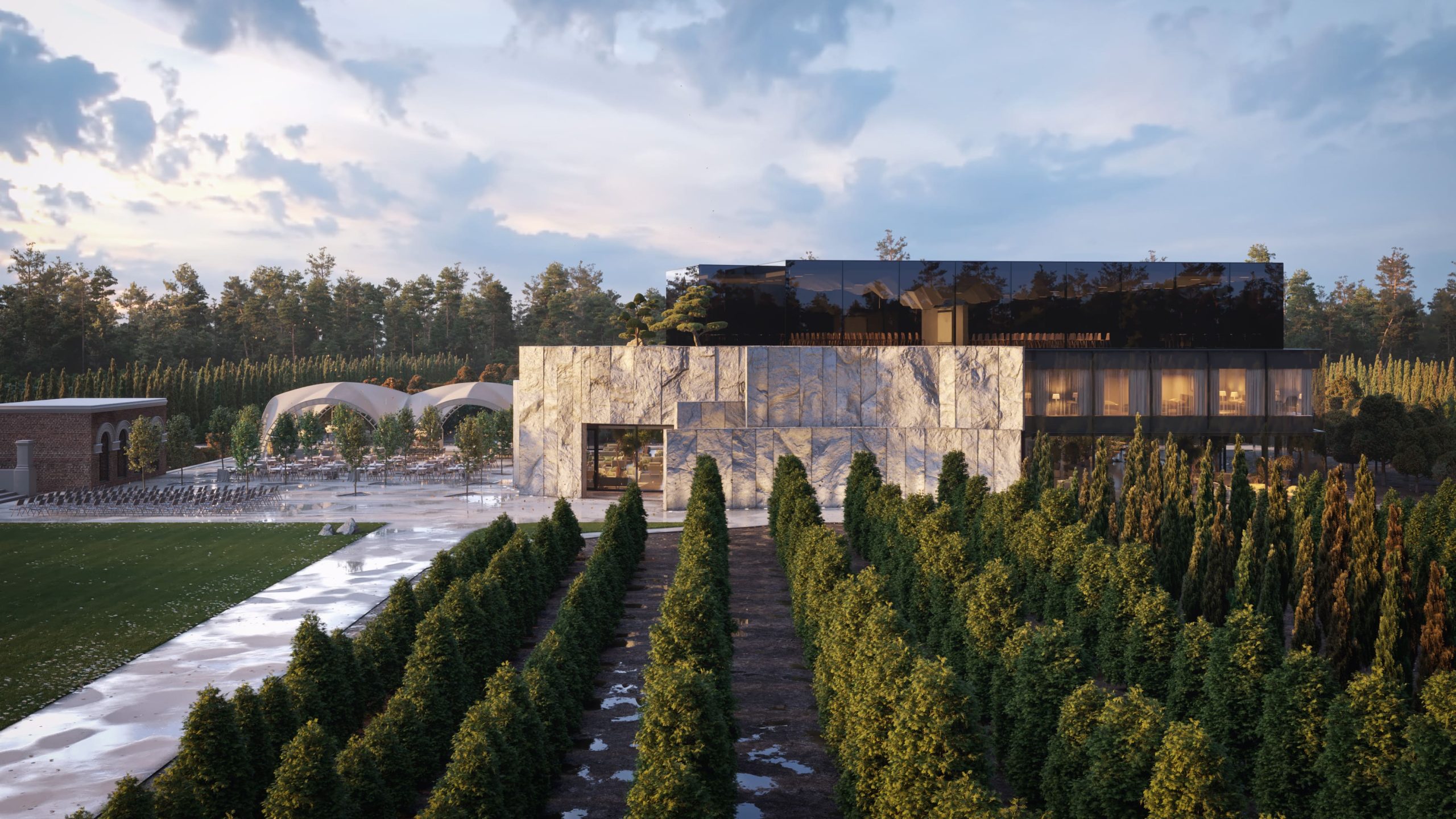 We designed a multifunctional complex on the territory of the Eva garden nursery, which is there to create a site for a permanent exhibition of garden furniture, equipment, and representative offices of companies providing related services.
