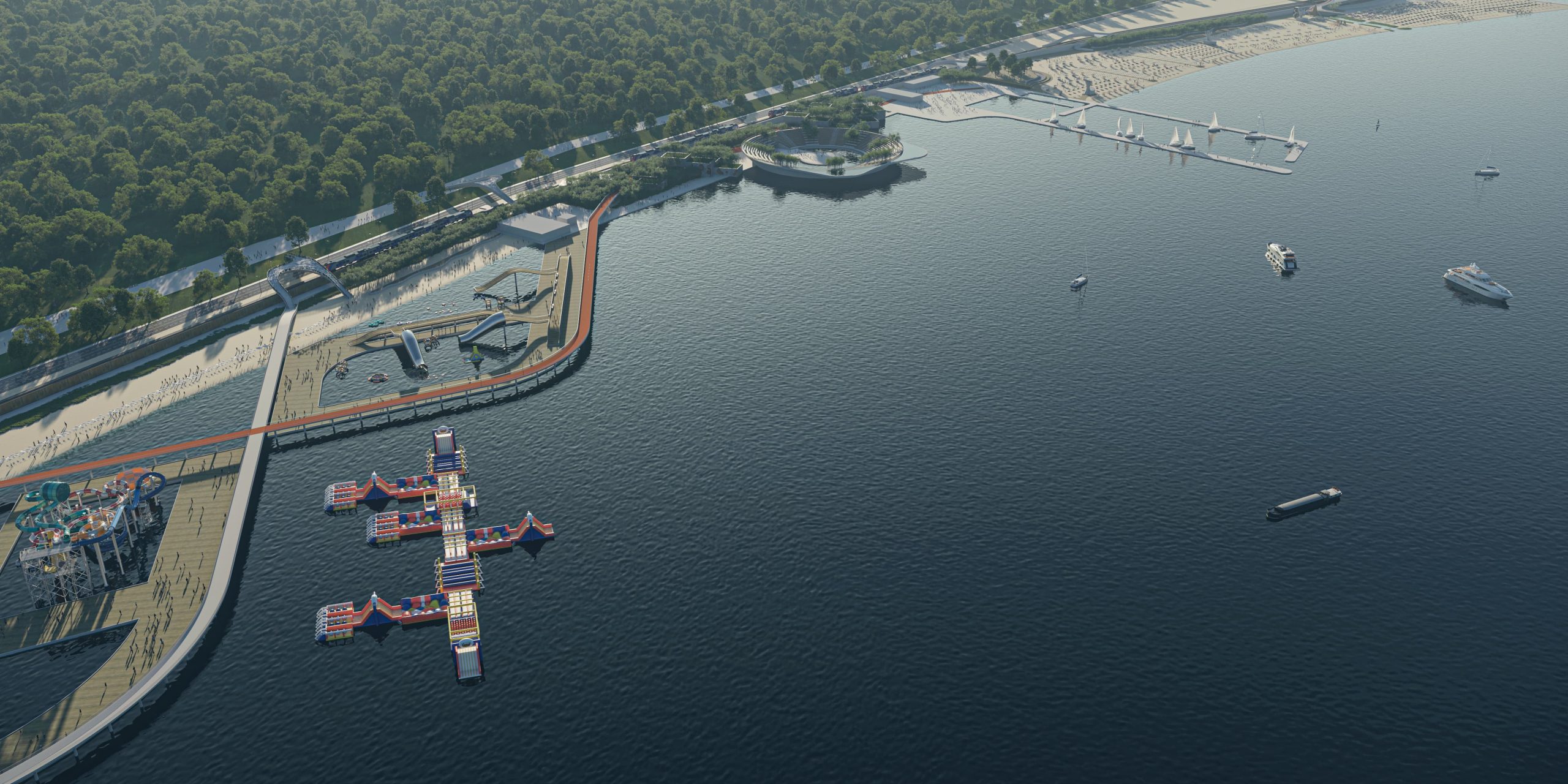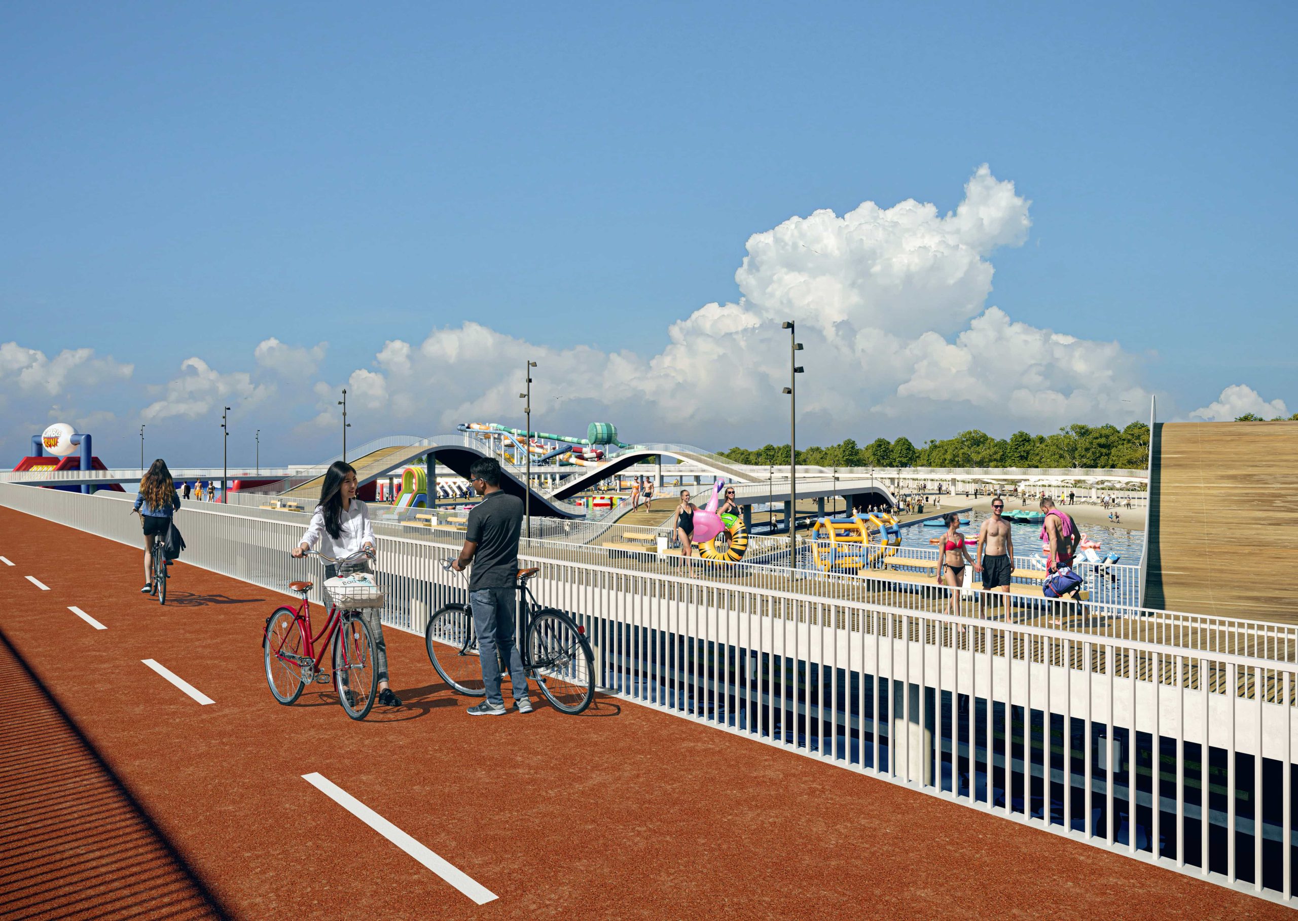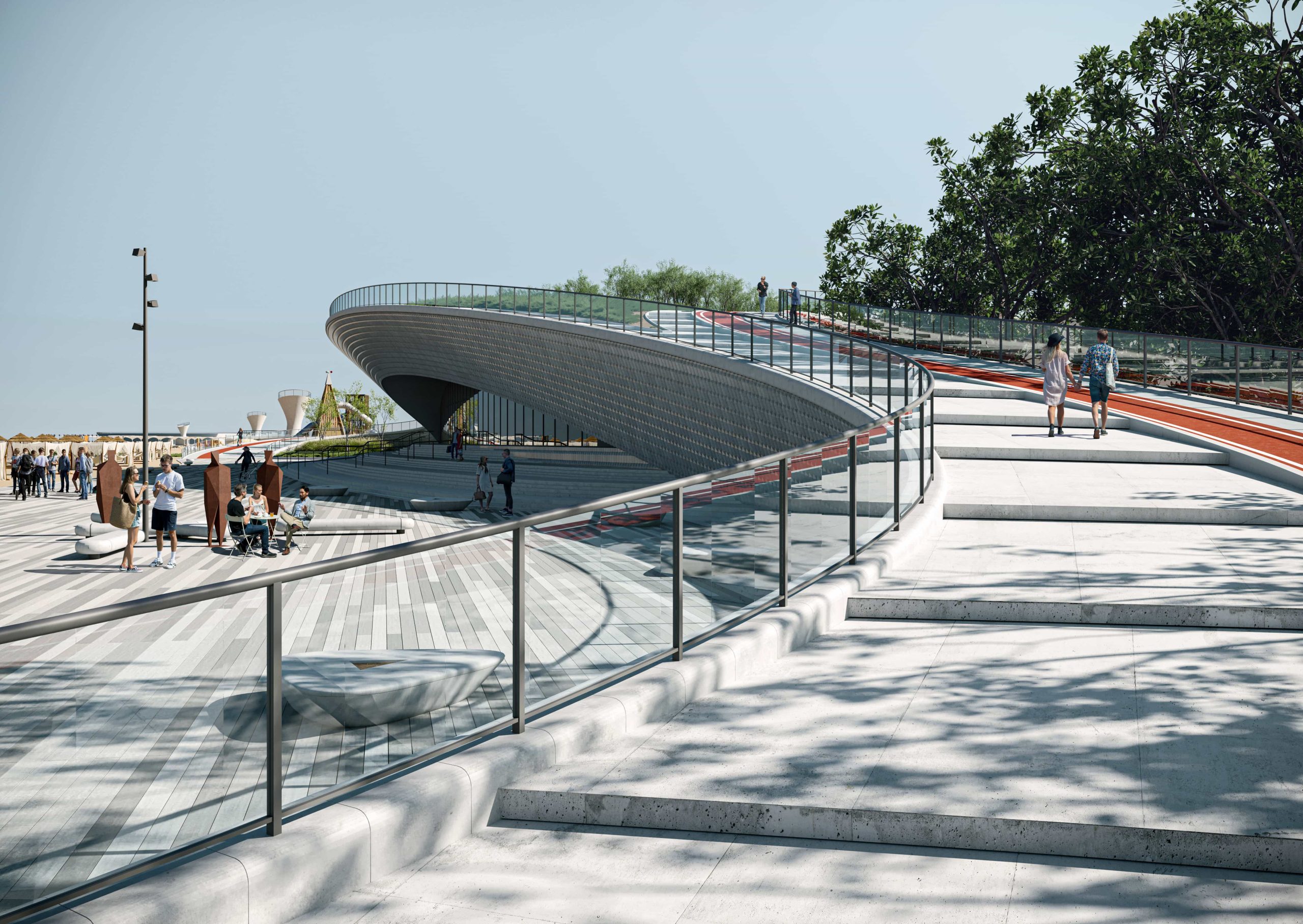 The space is adapted to principles of accessibility and inclusivity for all guest groups. The landscaping of the surrounding area includes access roads, parking, greenery, and recreational zones.
