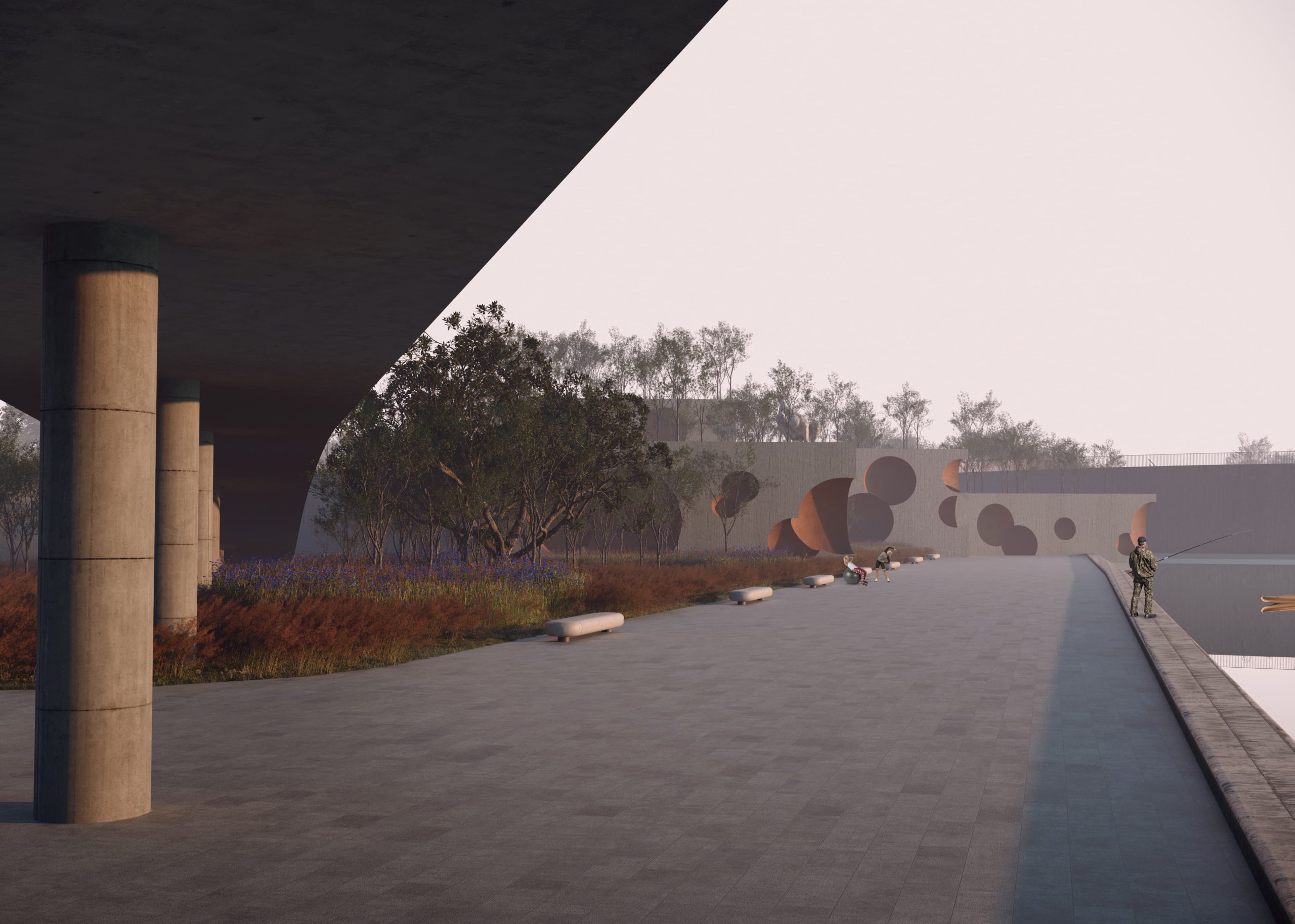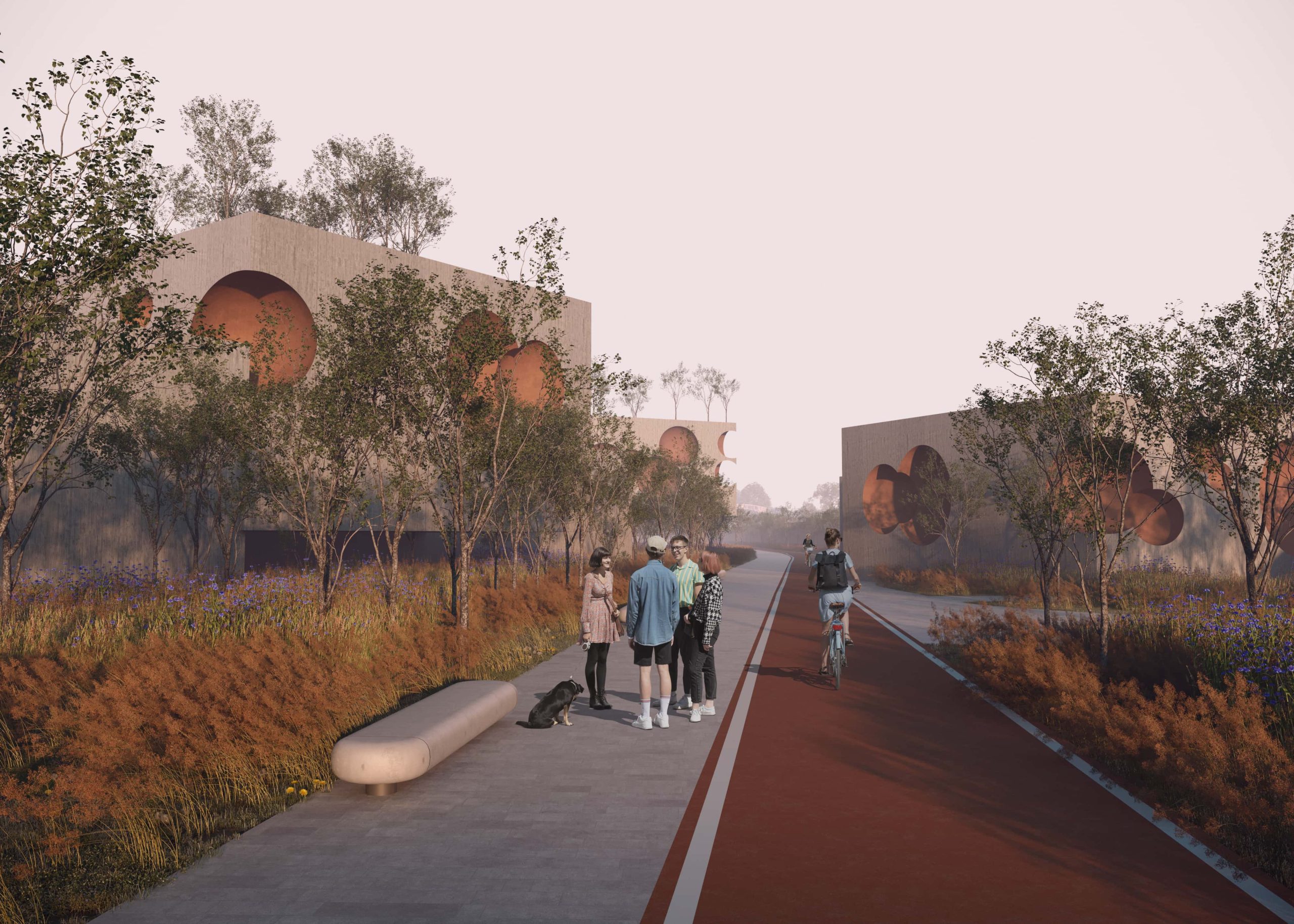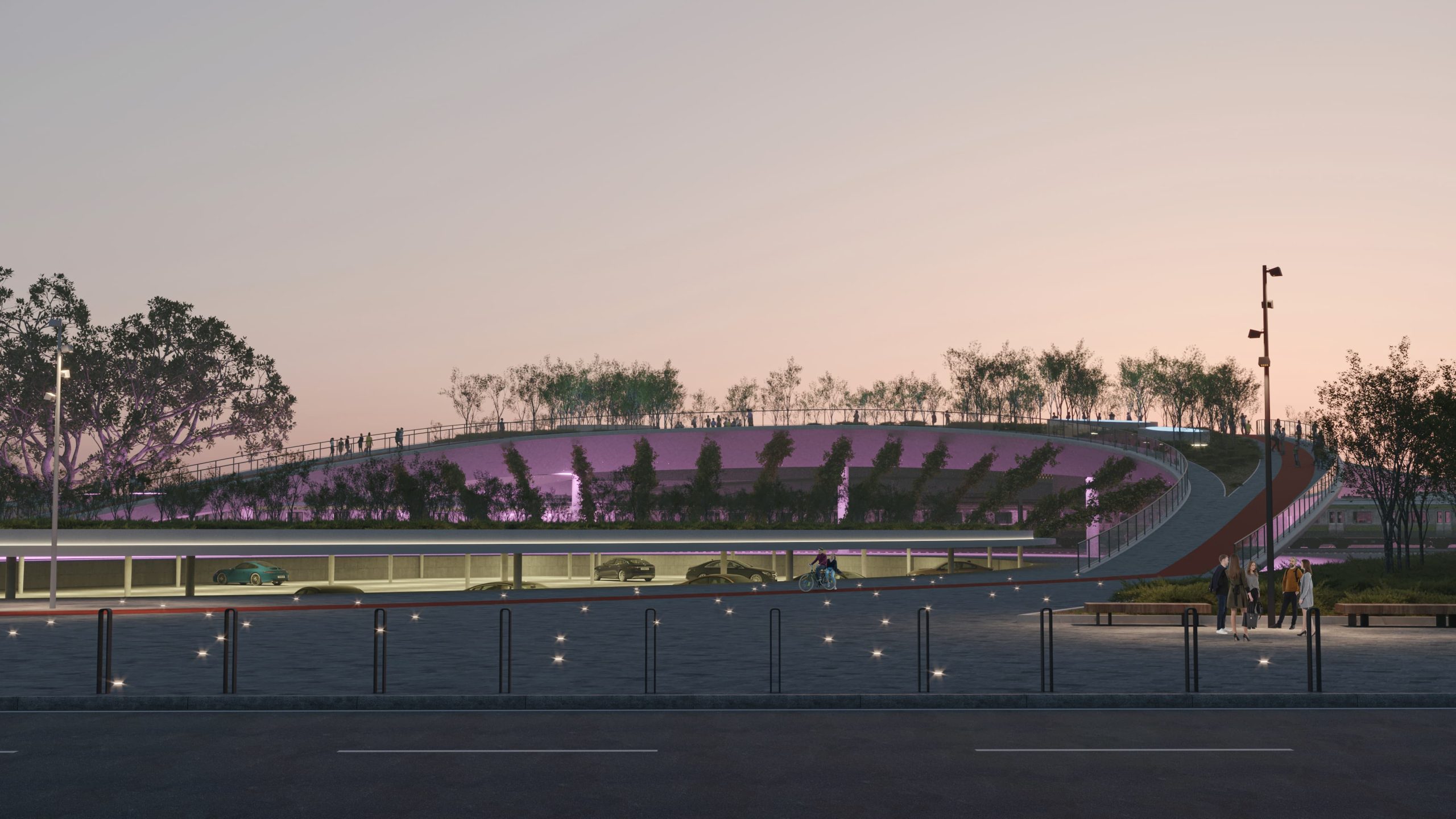 The space is adapted to principles of accessibility and inclusivity for all guest groups. The landscaping of the surrounding area includes access roads, parking, greenery, and recreational zones.