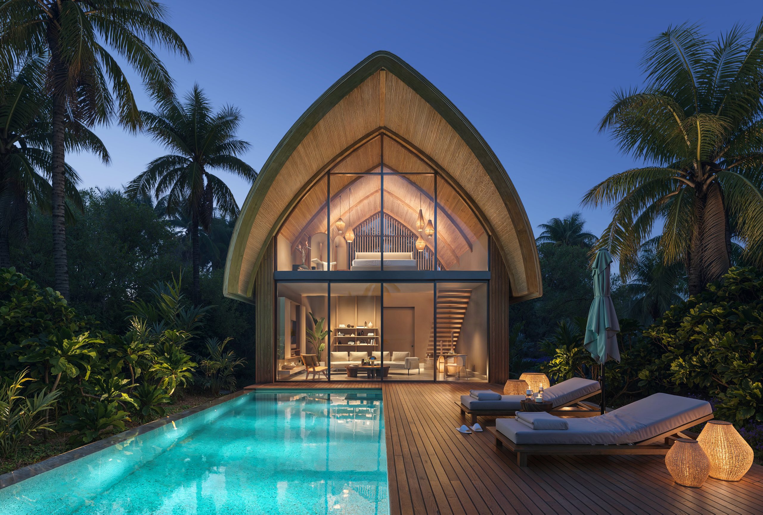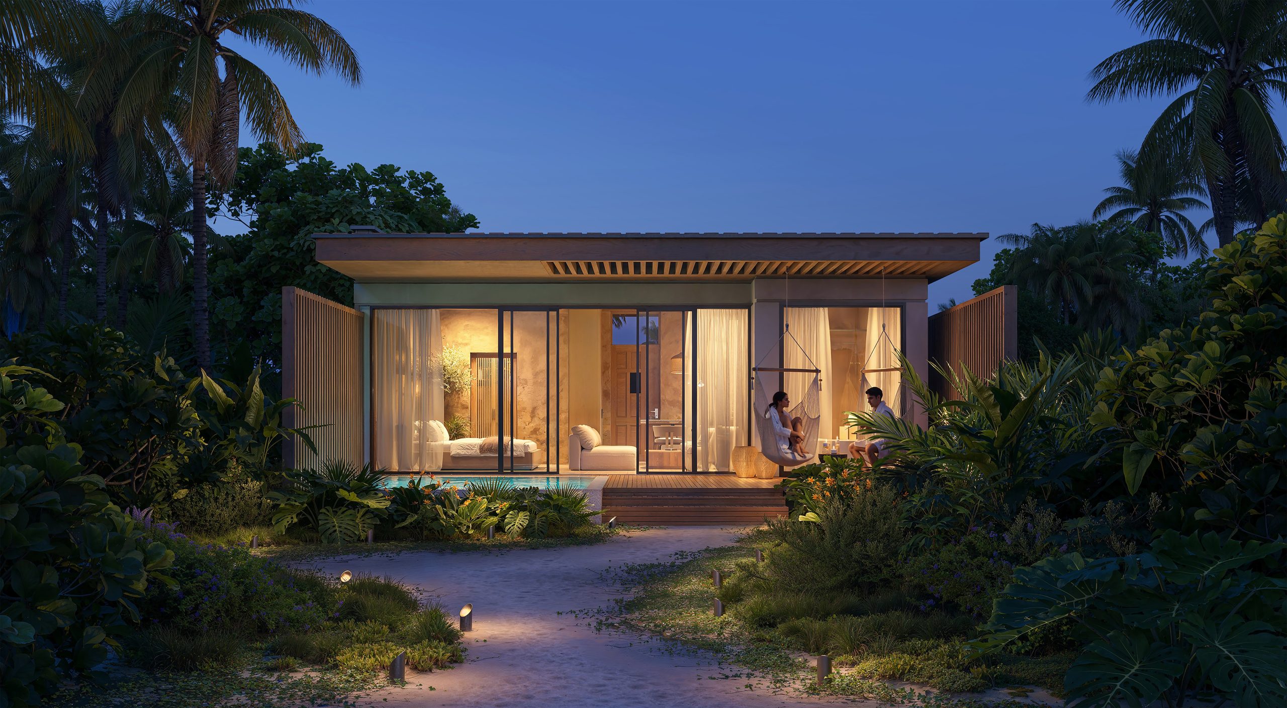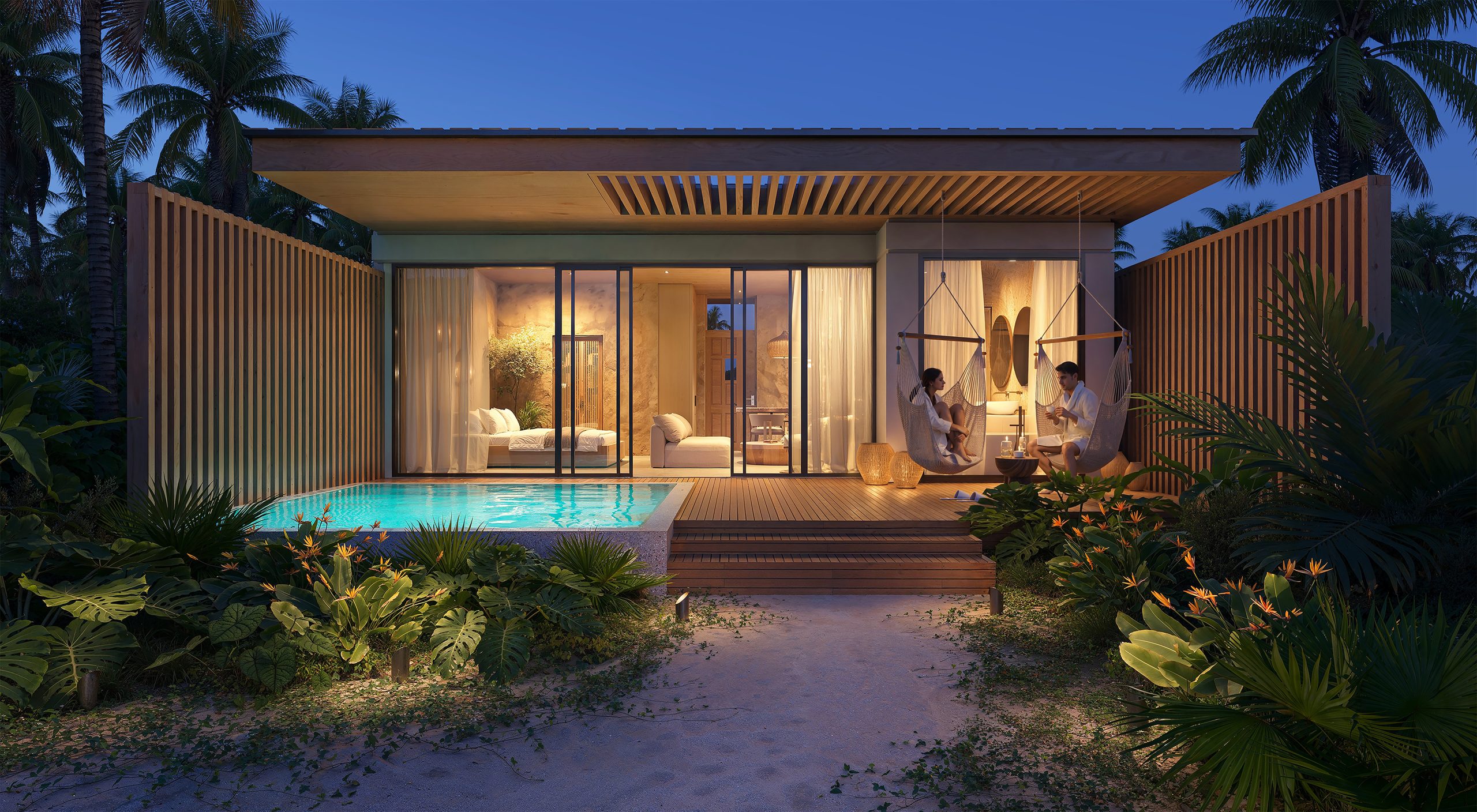 - Private Villas: The site also features individual one- and two-story villas with expansive panoramic windows and ocean views. Each villa includes a private pool for ultimate comfort.