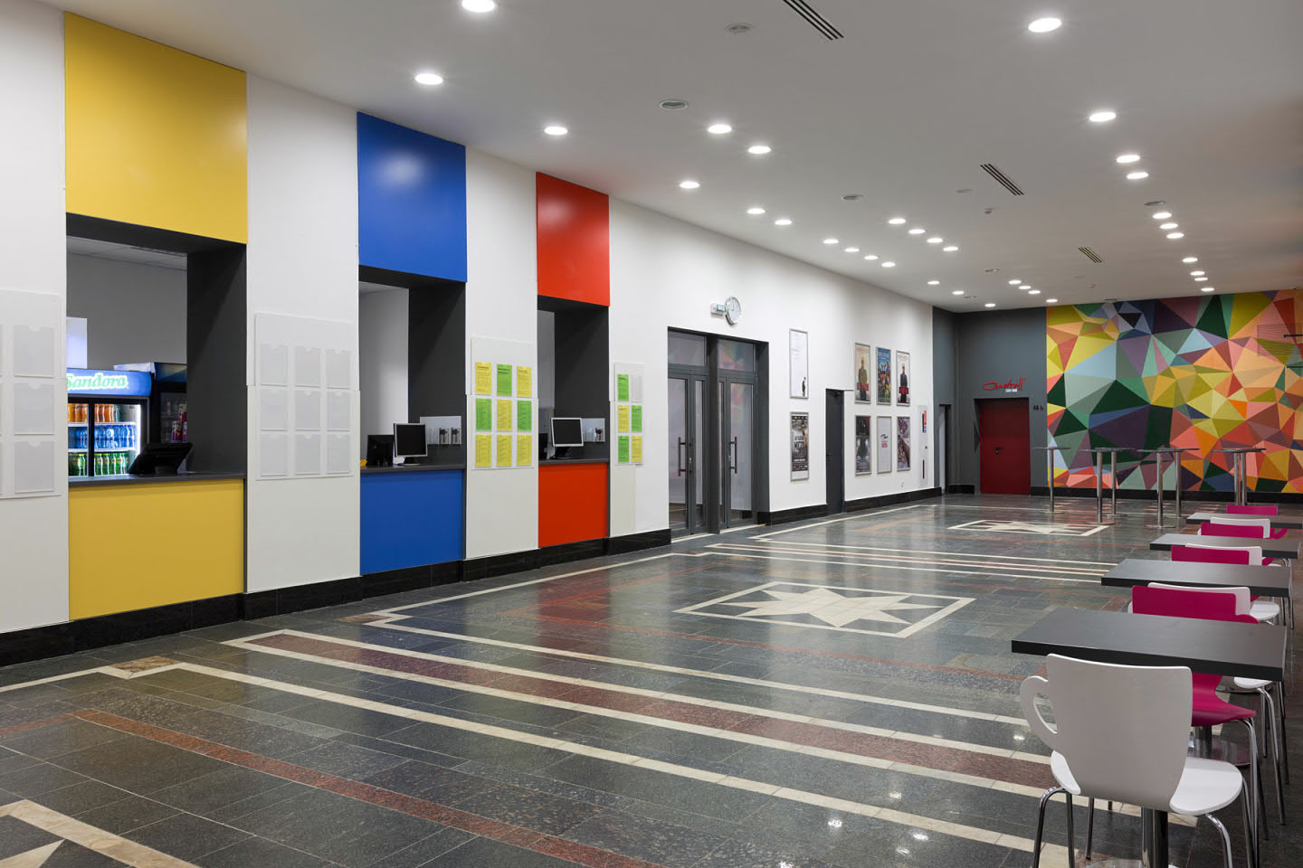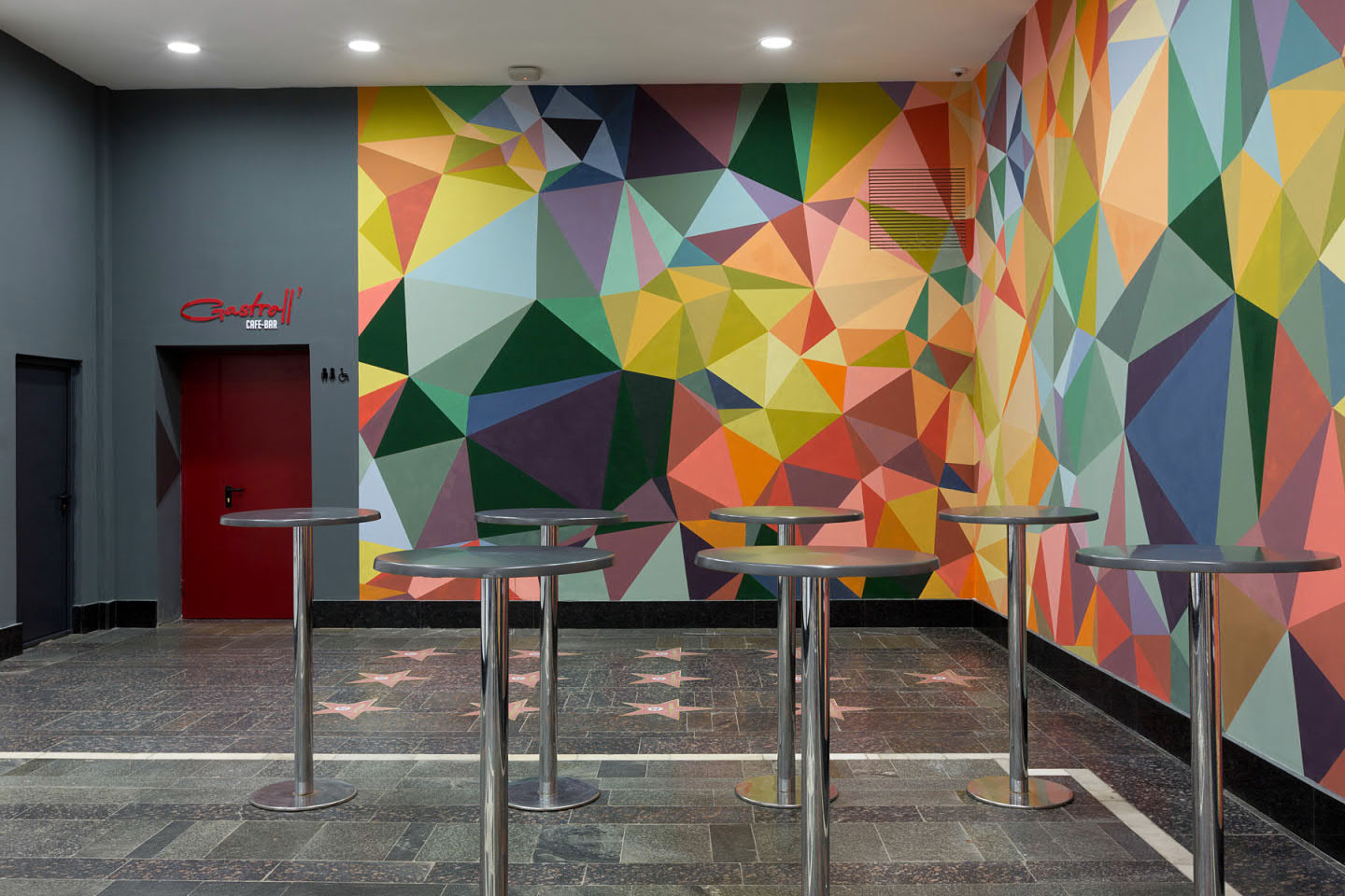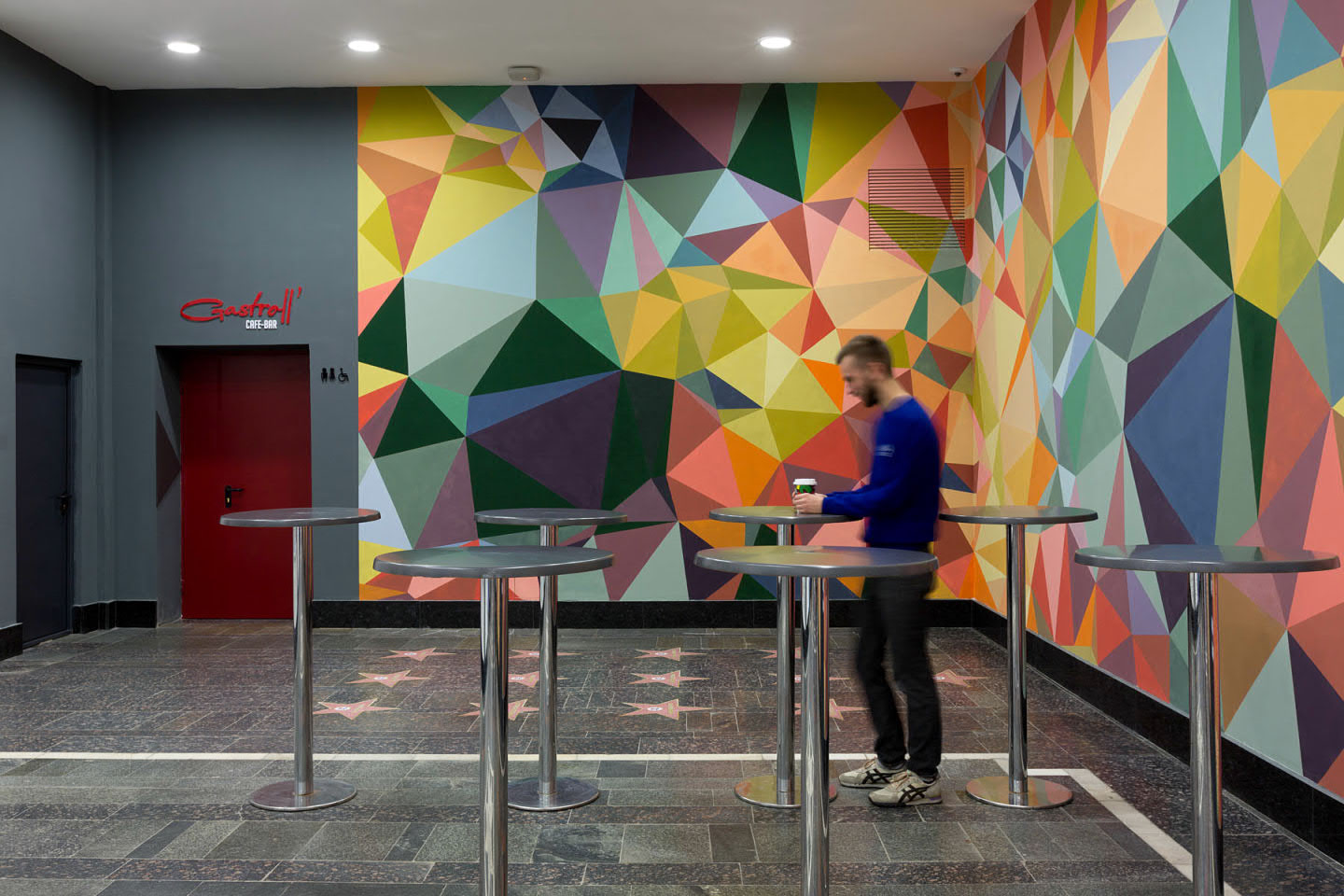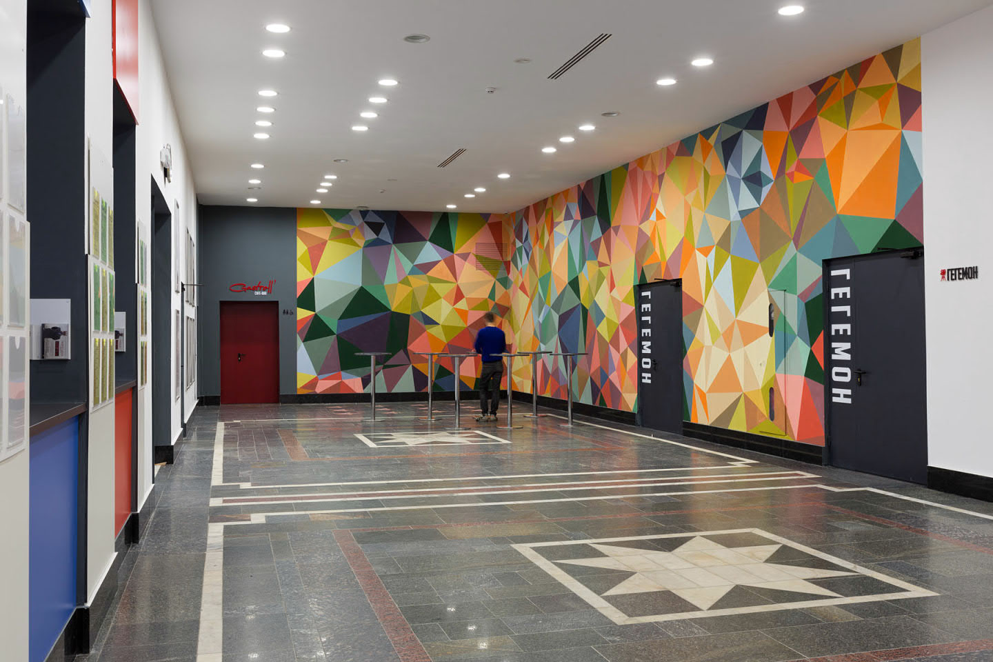 Therefore, it was decided to keep the same color that everyone already remembered. The additions of a dark gray color in the form of the cinema and slightly different sign design, now located at the intersection of streets, became small changes. The sign above the main entrance was colored in red. Such a choice favorably distinguishes the name, attracts the attention of passers-by, and salutes the old Zhovten.