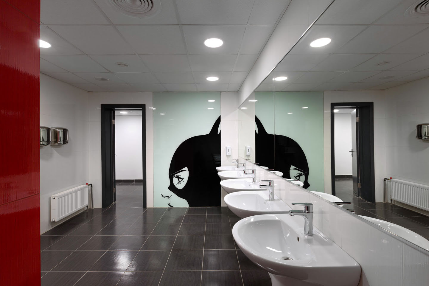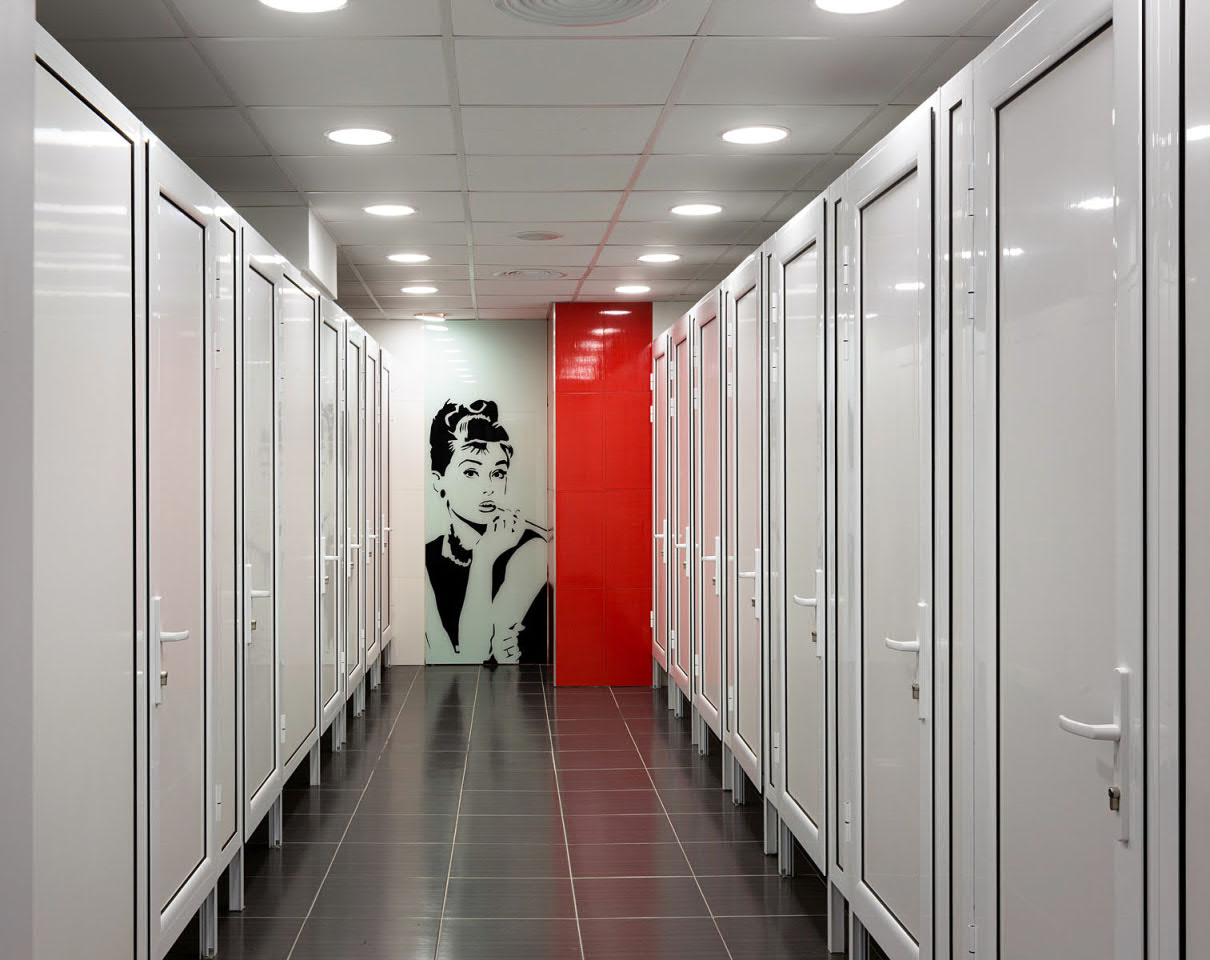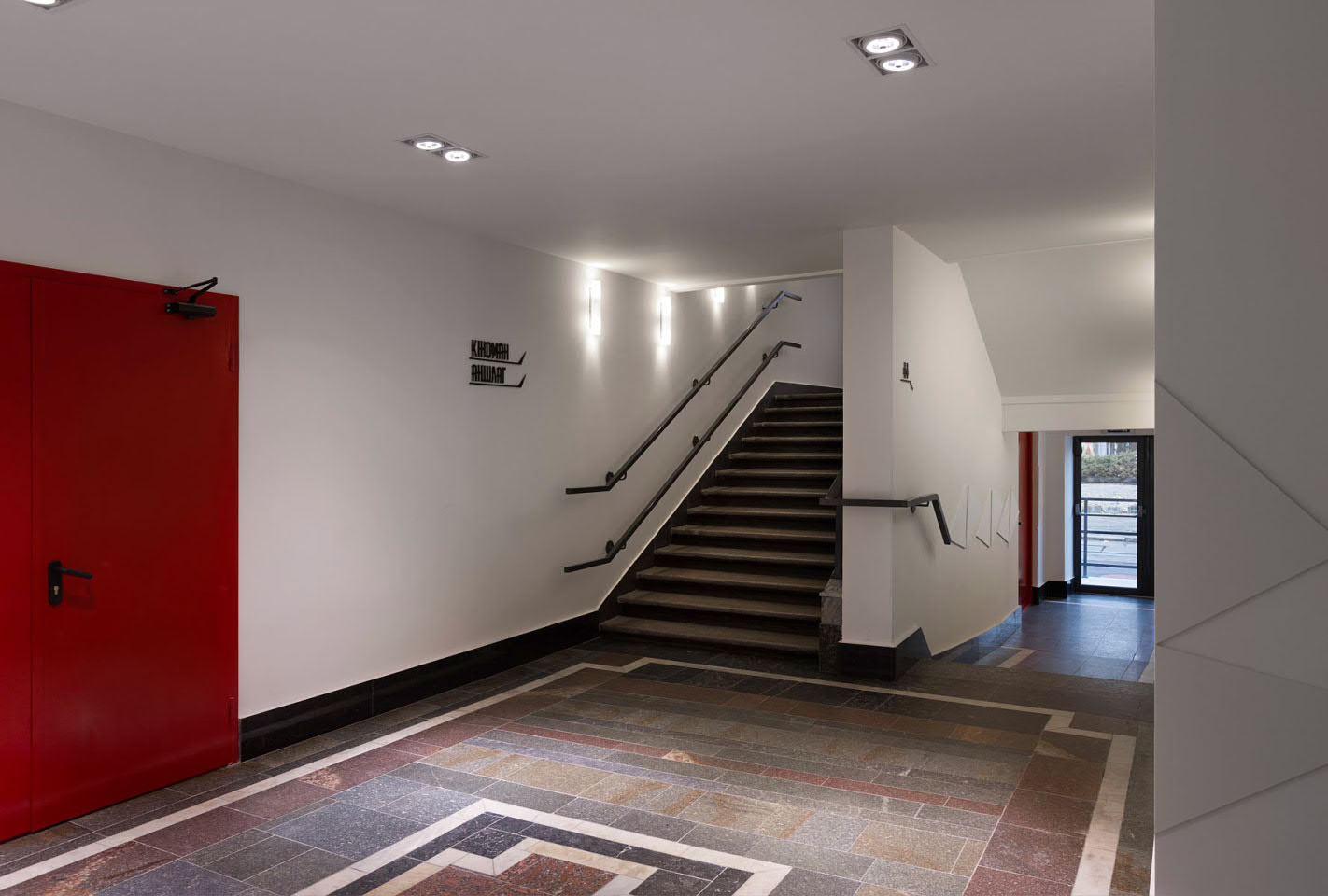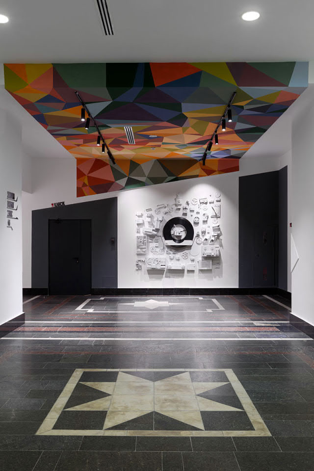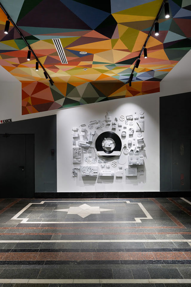 Thanks to the interesting ideas of architects and designers, the building got a new lease on life. Calm gray, diluted with dark and white inserts on the facade, correctly placed posters: all for the sake of a stylish and modern look.
