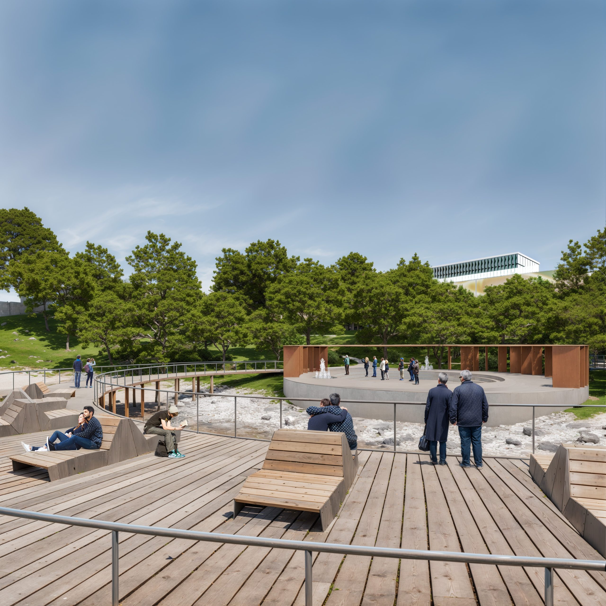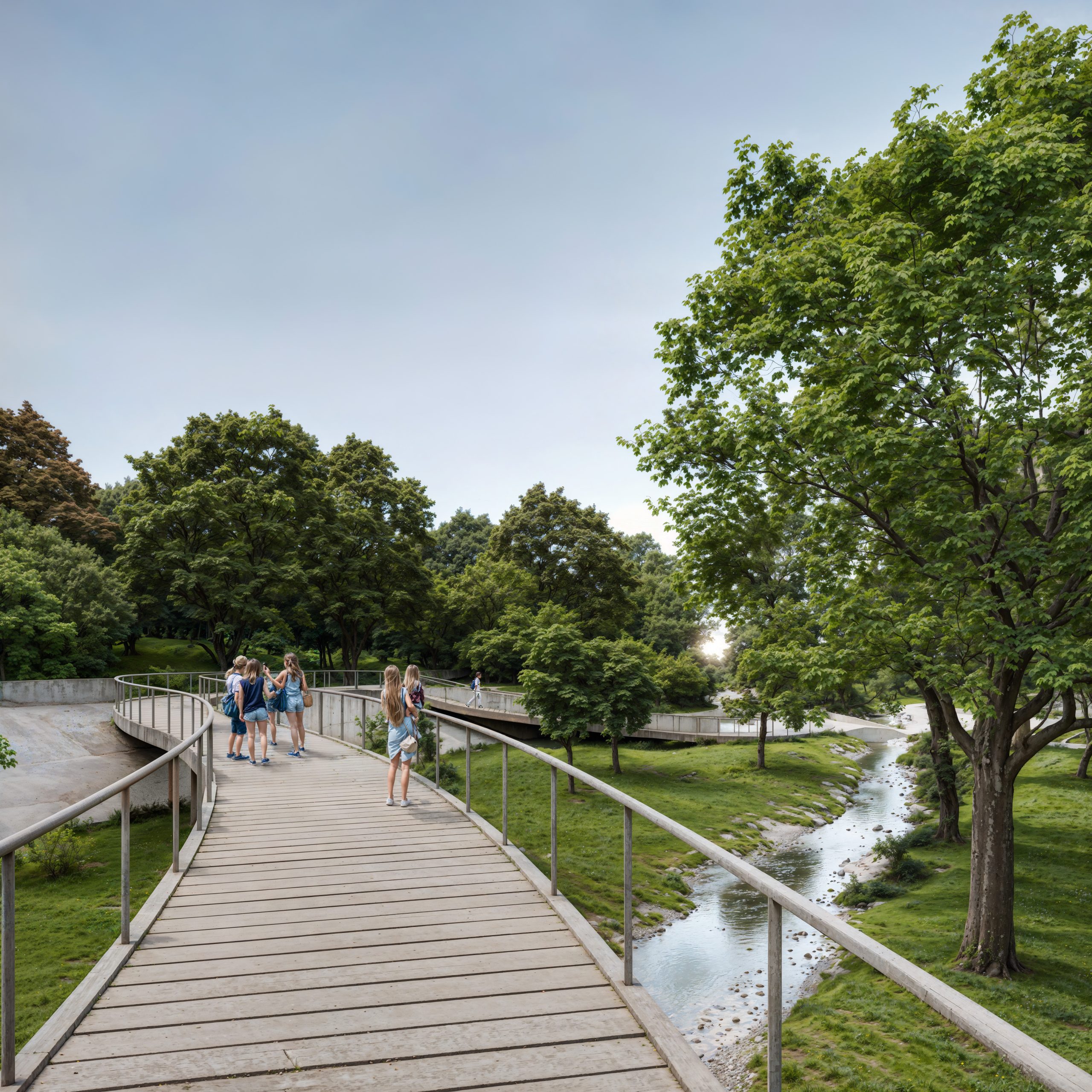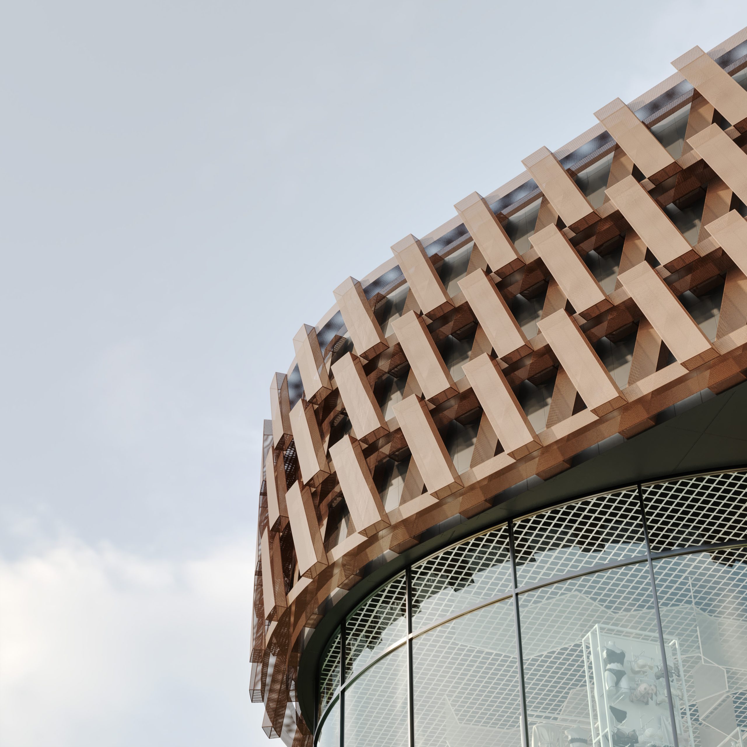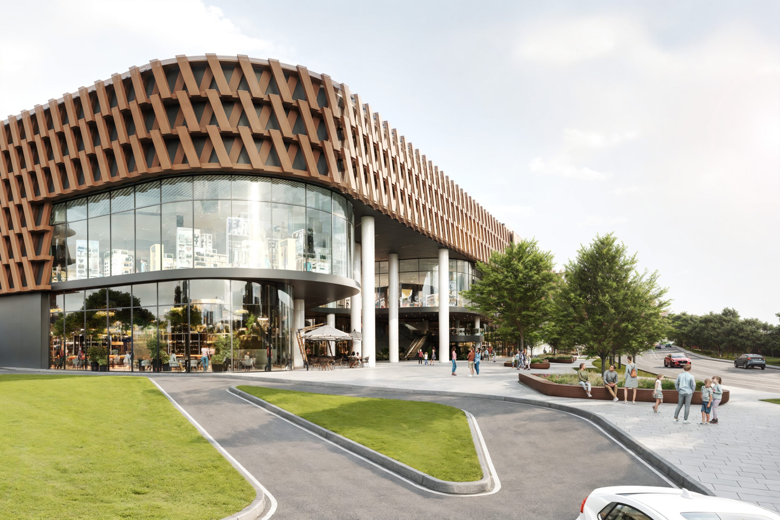 This architectural project is a modern shopping and entertainment center in Vinnytsia. The building features a sleek, curved façade, giving it a futuristic yet elegant appearance. Large glass windows on the ground floor create a welcoming atmosphere, connecting the interior with outdoor seating areas. The design integrates greenery and open spaces, enhancing the urban environment. Its innovative aesthetic and functional layout make it a key landmark for shopping, leisure, and social interaction in the city.