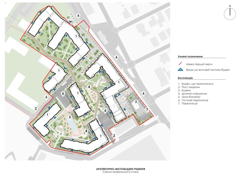 Архітектурний код проєкту базується на принципах human-scale: замість агресивної висотної забудови ми створили комфортний простір малоповерхових будинків. Це дозволило зберегти відчуття приватності, забезпечити інсоляцію дворів та відкрити панорамні види на Боздоський парк.