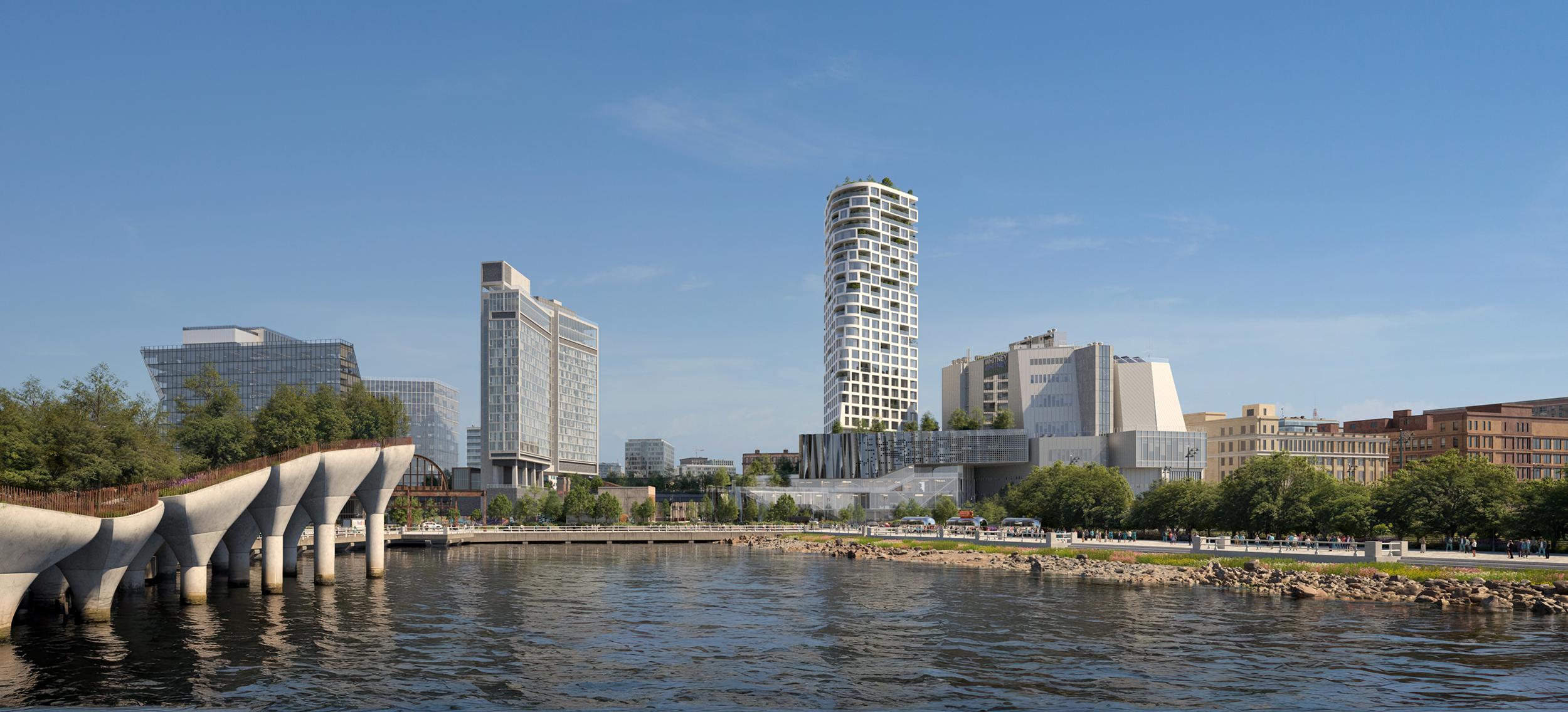 Проектом запропоновано залишити існуючу комерційну функцію та поєднати її з громадською. Таким чином функціональне наповнення нової будівлі включатиме виробництво, офіси, ресторани а також арт-галерею, театр та публічну бібліотеку. Передбачено також пішохідний зв’язок стилобатної частини будівлі із популярним парком Хайлайн, що проходить поруч.