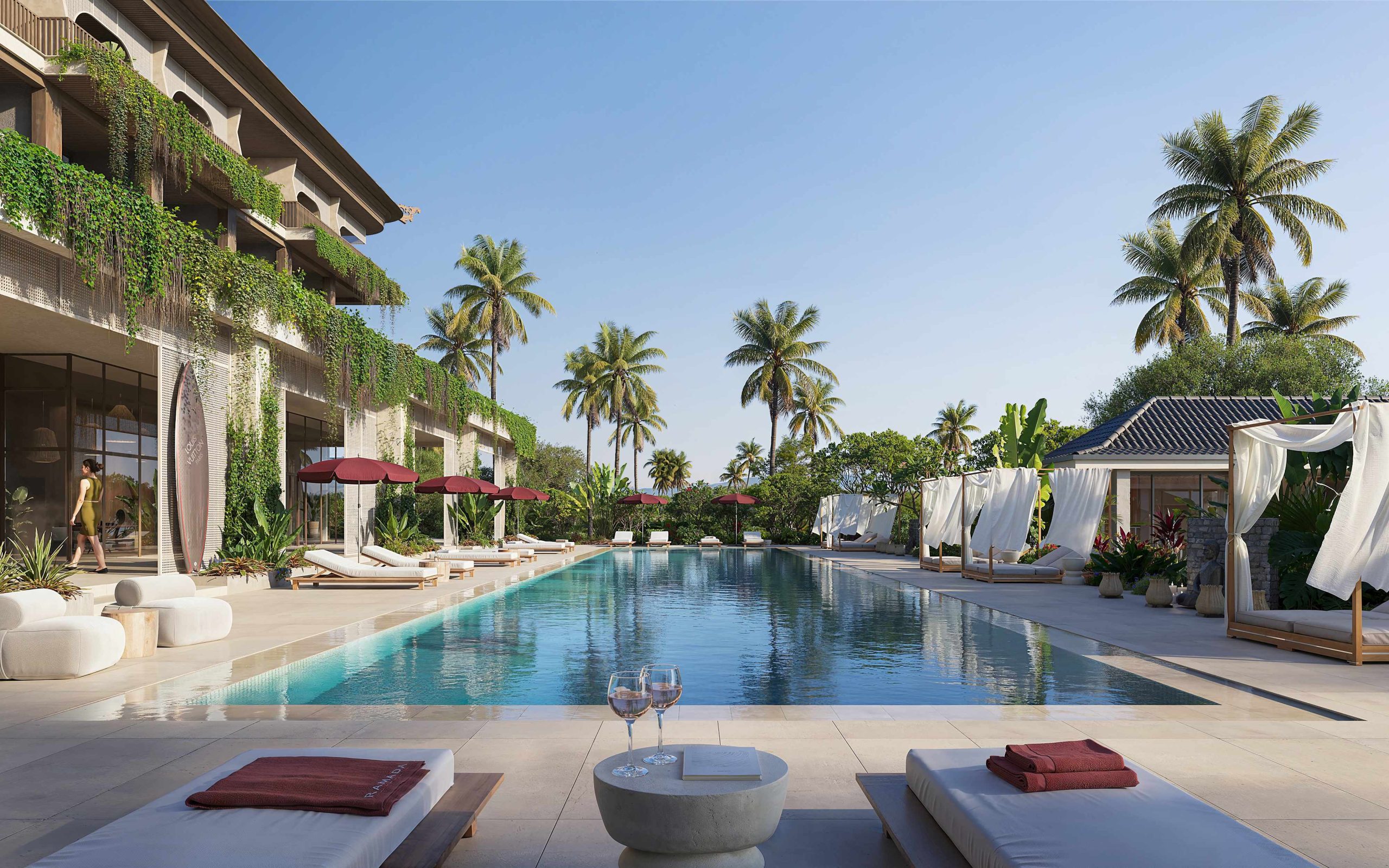 Курортний комплекс у Нуса-Дуа — це ансамбль, що поєднує бутик-готель та сектор приватних резиденцій, створений для відпочинку та відновлення. Це своєрідний «проєкт-симбіоз», який демонструє, як можна гармонійно поєднати щільну функціональну структуру та повагу до природного ландшафту.