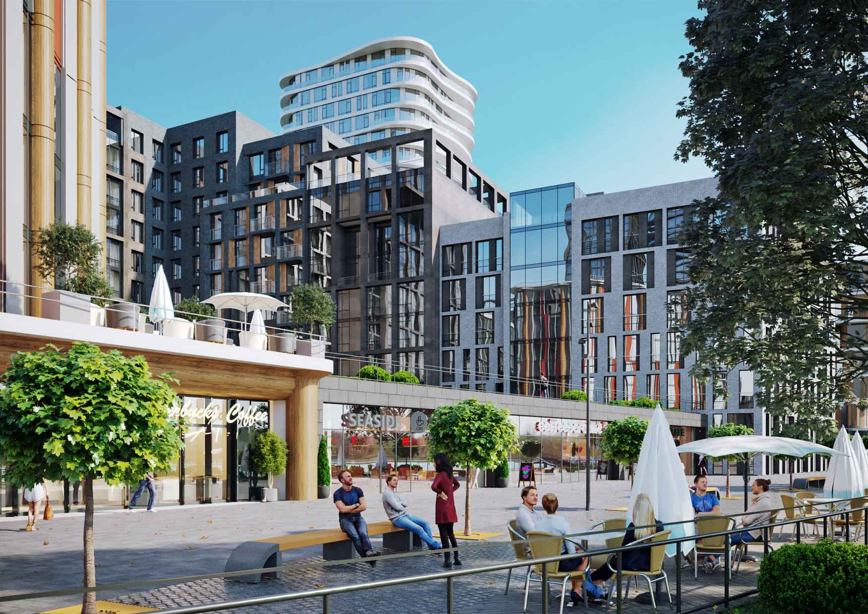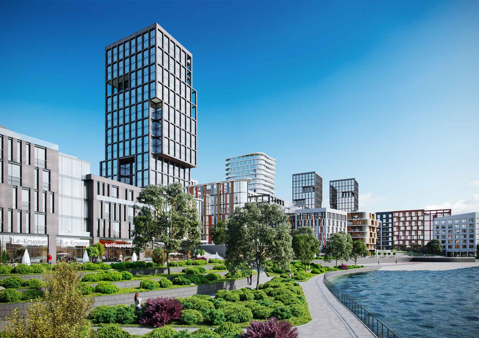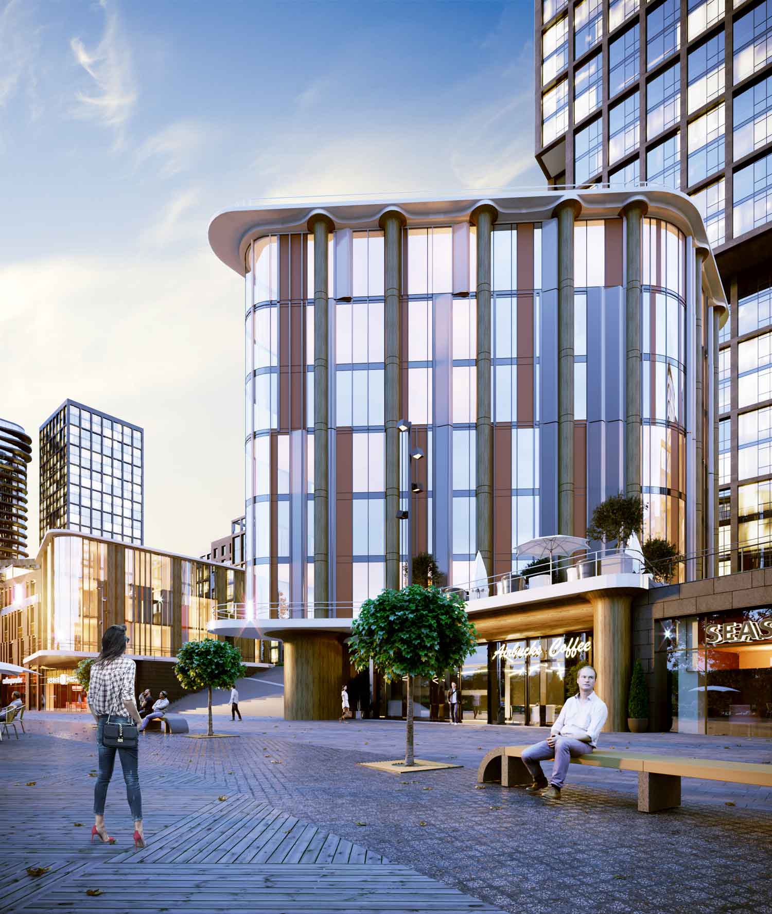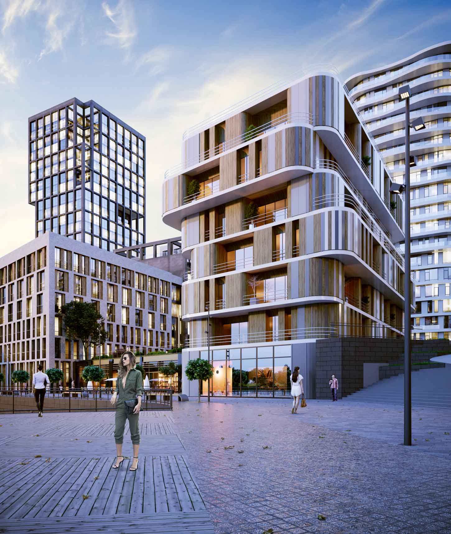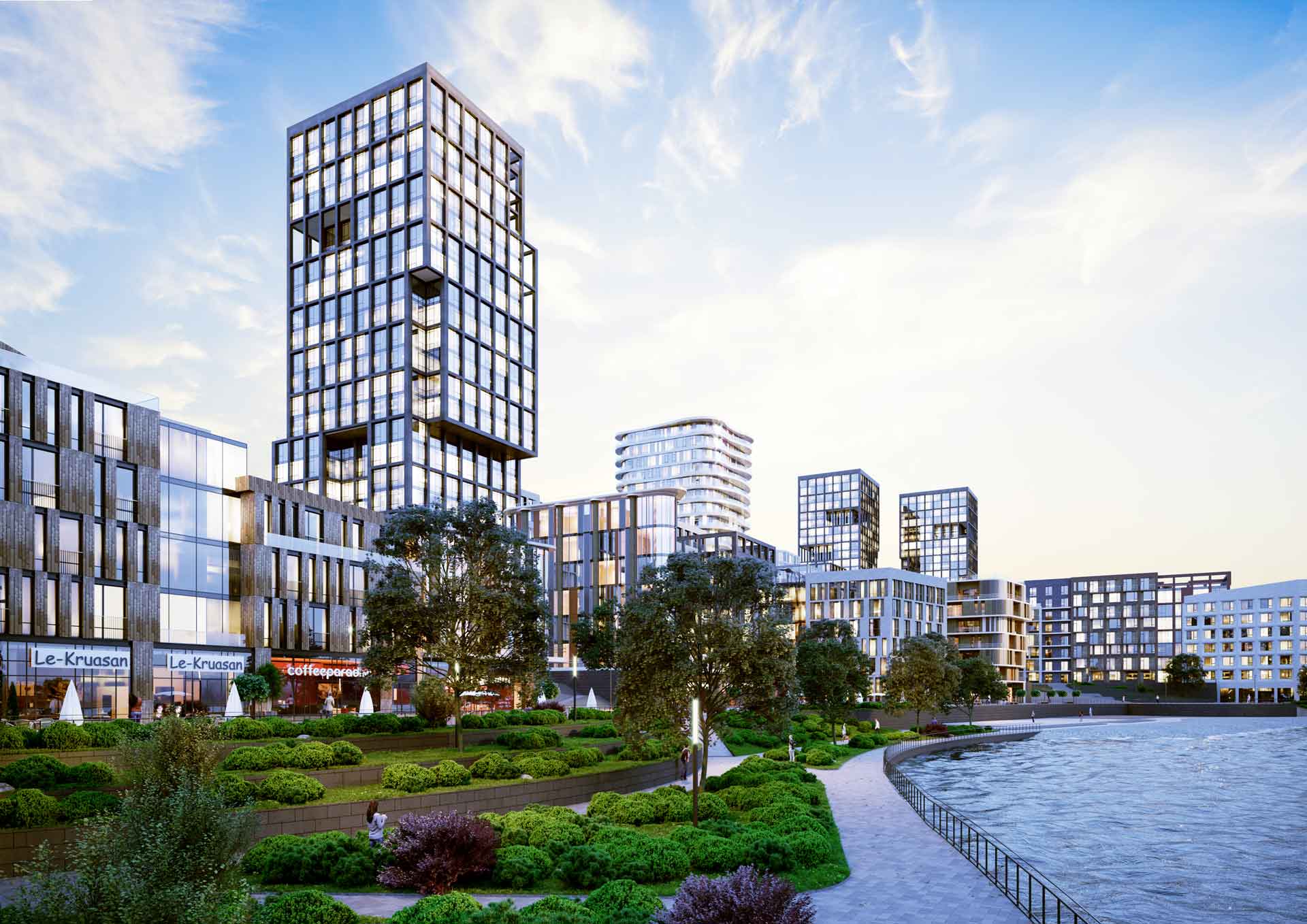 RiverLife — це амбітна концепція багатофункціонального житлового комплексу, що трансформує прибережну зону у новий центр тяжіння. Проєкт розроблено з метою створення самодостатнього мікрорайону, де урбаністичний комфорт гармонійно поєднується з природним ландшафтом річки. Архітектурний образ комплексу формує динамічна змінна поверховість (від 2 до 28 поверхів). Таке рішення дозволяє не лише створити виразний силует (скайлайн), але й забезпечити максимальну кількість квартир видовими характеристиками, зберігаючи при цьому інсоляцію внутрішніх дворів. Важливим елементом екосистеми RiverLife є розвинена інфраструктурна платформа. Комерційні площі, інтегровані в нижні рівні, формують активний громадський простір на набережній, наповнюючи його сервісами та зонами дозвілля. Водночас проєкт безкомпромісно вирішує питання логістики, що дозволяє реалізувати концепцію «двір без машин», віддаючи пріоритет пішоходам, озелененню та безпеці внутрішнього простору.